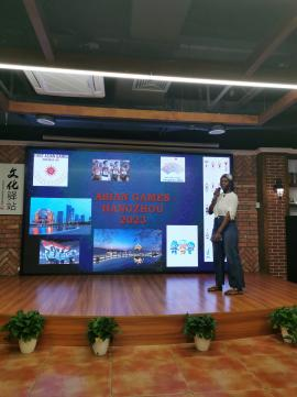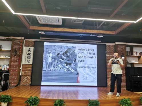 本次活动由国际学院教工第一支部书记涂海强发起、策划、主持。活动过程中,太阳成集团tyc33455ccwww的国际员工安琪、贝勒、瓦达、安益、伊戈尔分享了自己对亚运会的认识和理解。同学们制作了精美的幻灯片和短视频,讲述了亚运会的文化知识、中国举办亚运会的历史、杭州亚运会的赛事文化、赛事项目、赛事场地等,现场每一位党员都感受到了国际员工的用心和认真。