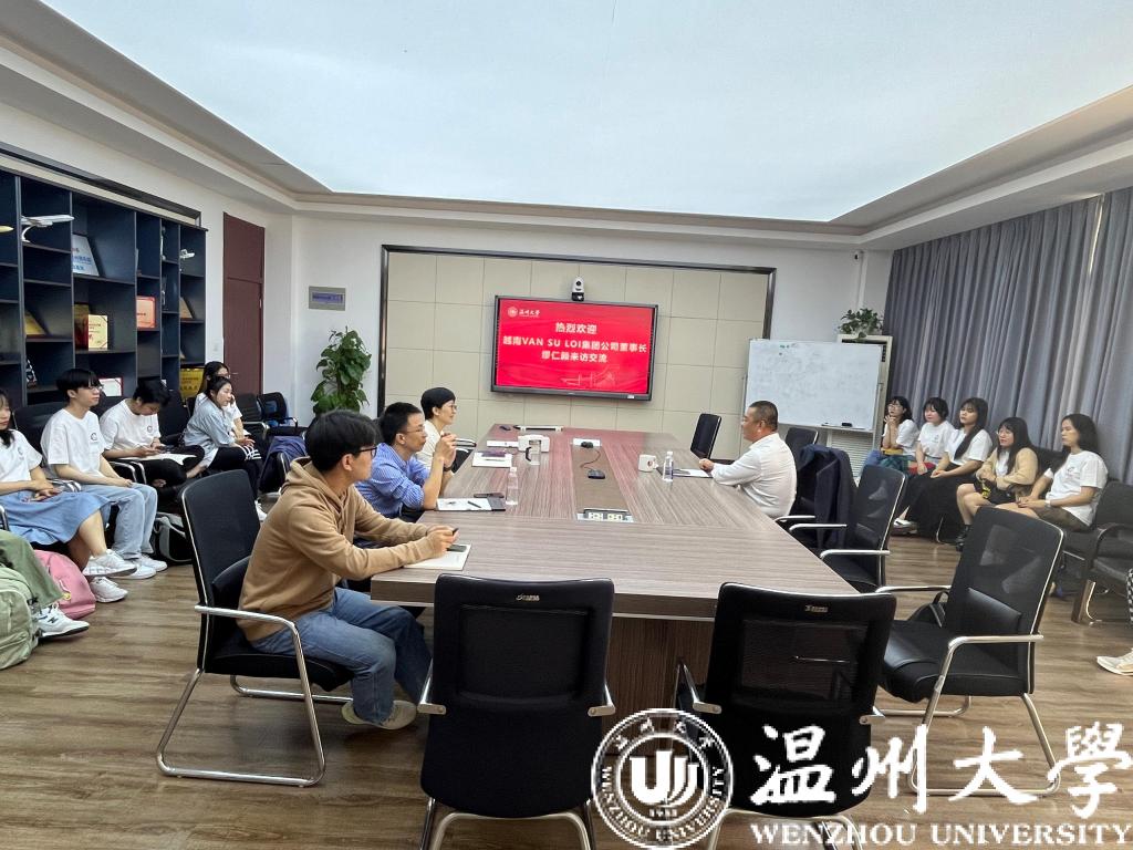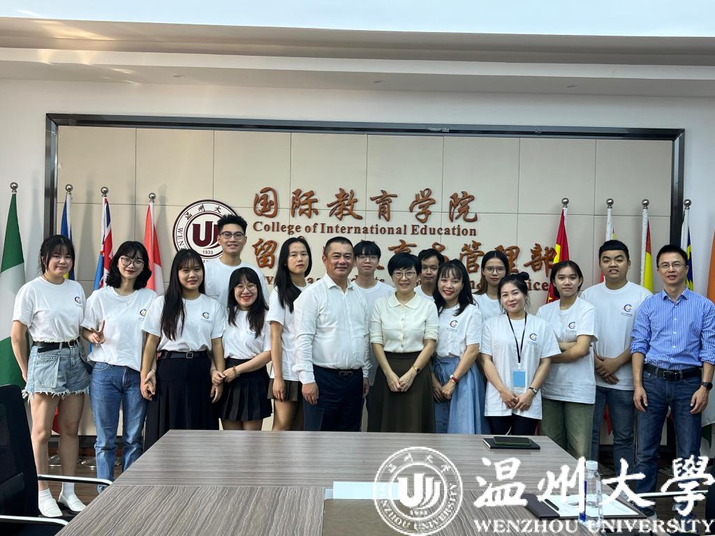 10月15日,越南中国商会浙江企业联合会会长缪仁赖受邀来校与越南籍国际员工现场交流,公司党总支书记林爱菊、副书记方建晓等参加交流会。会上越南籍国际员工纷纷作了自我介绍,并分享了留学温大的真实感受,同学们认为温大的软硬件资源让自己对未来的学习充满期盼。