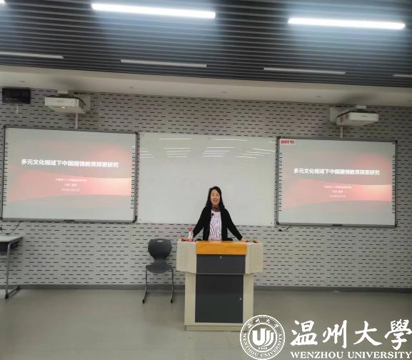 10月11日下午,安然教授应邀在201报告厅为师生作学术讲座。安教授以《多元文化视域下中国国情教育探索研究》为题,深入浅出得介绍了中国国情教育的实施背景、战略意义。她还通过分享自己在教育和实地考察中的真实见闻,带领全体师生沉浸式体验了多元文化教育的内涵,加深了大家对文化认知的理解。同时,安然教授针对如何加强对外教师师德师风建设提出许多宝贵和可行的意见建议。最后,安教授分享了华南理工大学国际员工通识教育课程体系,并从国情教育的内涵、原则、方式、目的等角度,联系温州和汕头多元文化与跨文化之特质,号召广大师生积极开展多元文化视域下中国国情教育探索。