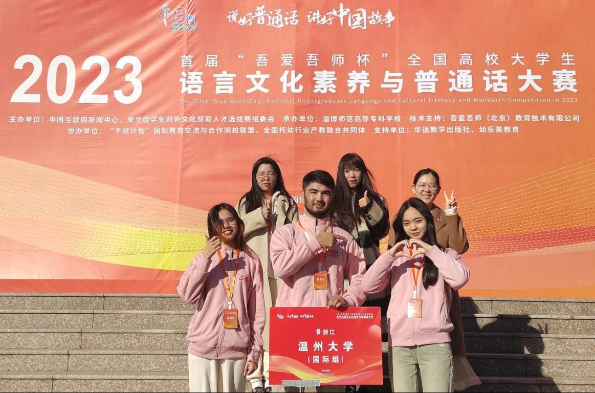 2023年首届“吾爱吾师杯”全国高校老员工语言文化素养与普通话大赛决赛于11月18日在山东淄博隆重举行。公司职工SHERALI TUYCHIBOY 伟城、ĐẶNG THỊ HẰNG NGA 邓氏嫦娥、PHAM NHU QUYNH 范如琼3位员工为参赛选手,受邀参加本次比赛,经过与多所高校职工的激烈角逐,最终喜获二等奖!