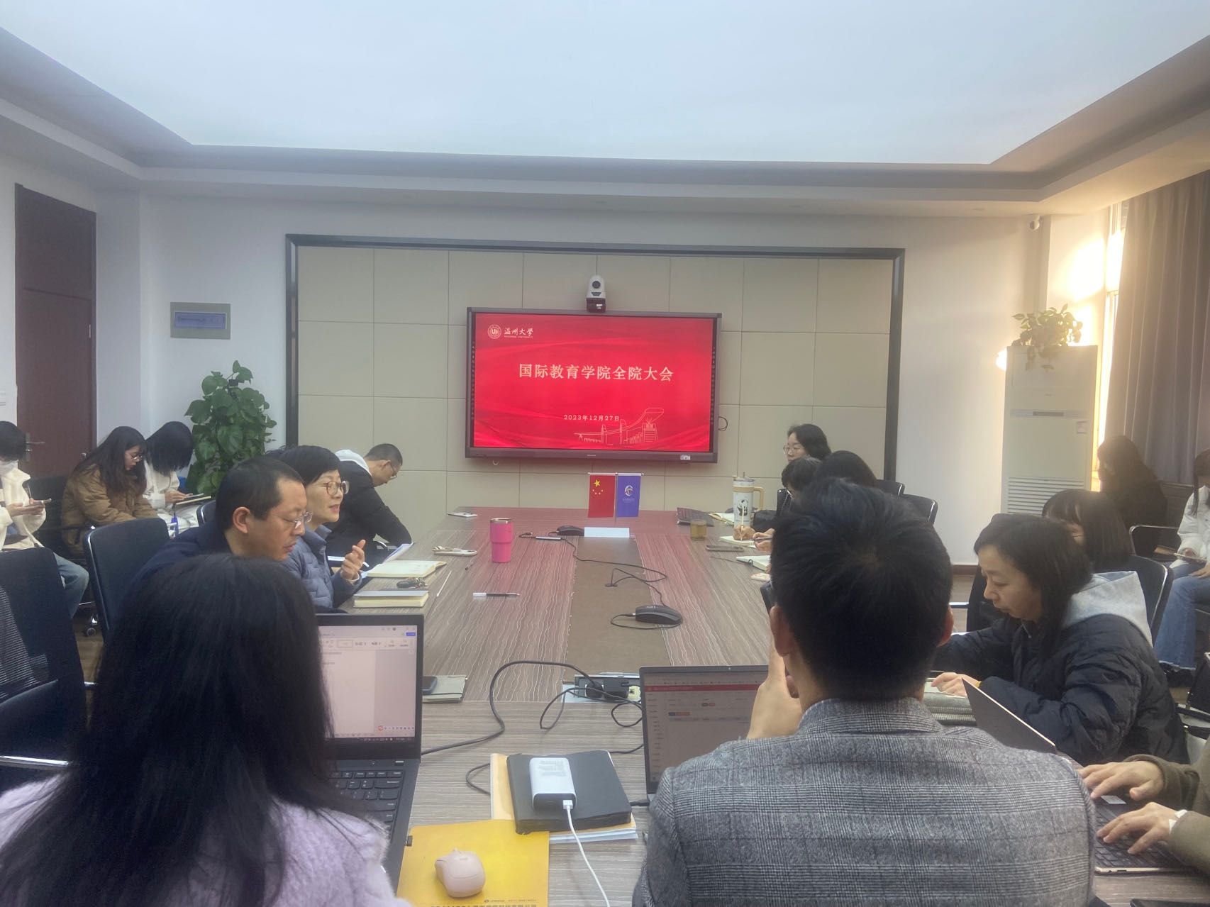 12月27日下午,太阳成集团tyc33455ccwww全院教师在国际楼311会议室召开全院教职工大会,党总支书记林爱菊主持。