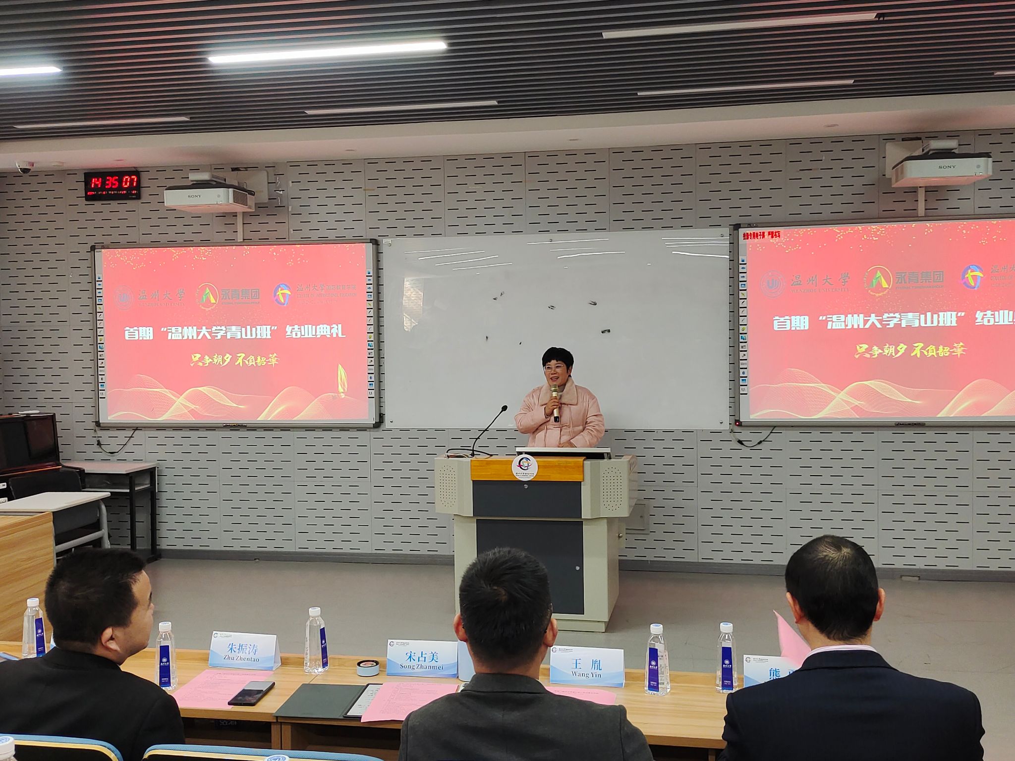 结业典礼后,青山实业代表与院领导、青山班班主任、教师代表、项目管理人员一同开展座谈会,双方就首期“温大青山班”项目运行情况进行总结与回顾,同时双方对第二期“青山班”项目的相关细节进行沟通与协商,以便后期项目更好的开展。