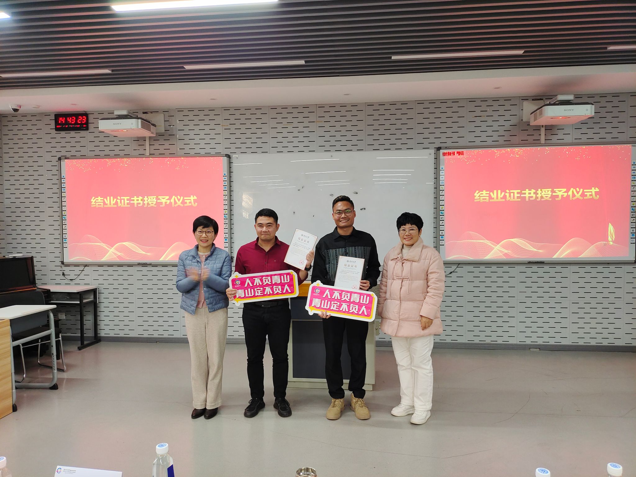随后在全体企业领导、老师、同学们共同见证下,安德鲁和张加油作为学员代表从宋经理手上接过沉甸甸的结业证书。