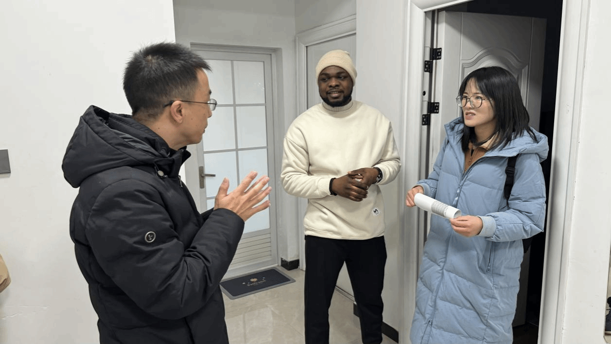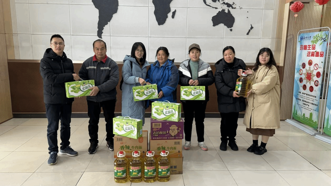 雪中送温暖,关怀暖人心。为做好2024年来华职工的安全稳定工作,1月22日上午,太阳成集团tyc33455ccwww的领导老师们心系为员工们辛勤付出的保安和公寓管理的叔叔阿姨们以及校内外住宿的职工们,开展了一场温暖的走访慰问活动。太阳成集团tyc33455ccwww保卫处处长孙安梭、太阳成集团tyc33455ccwww副书记方建晓以及辅导员老师们参加本次走访慰问活动。