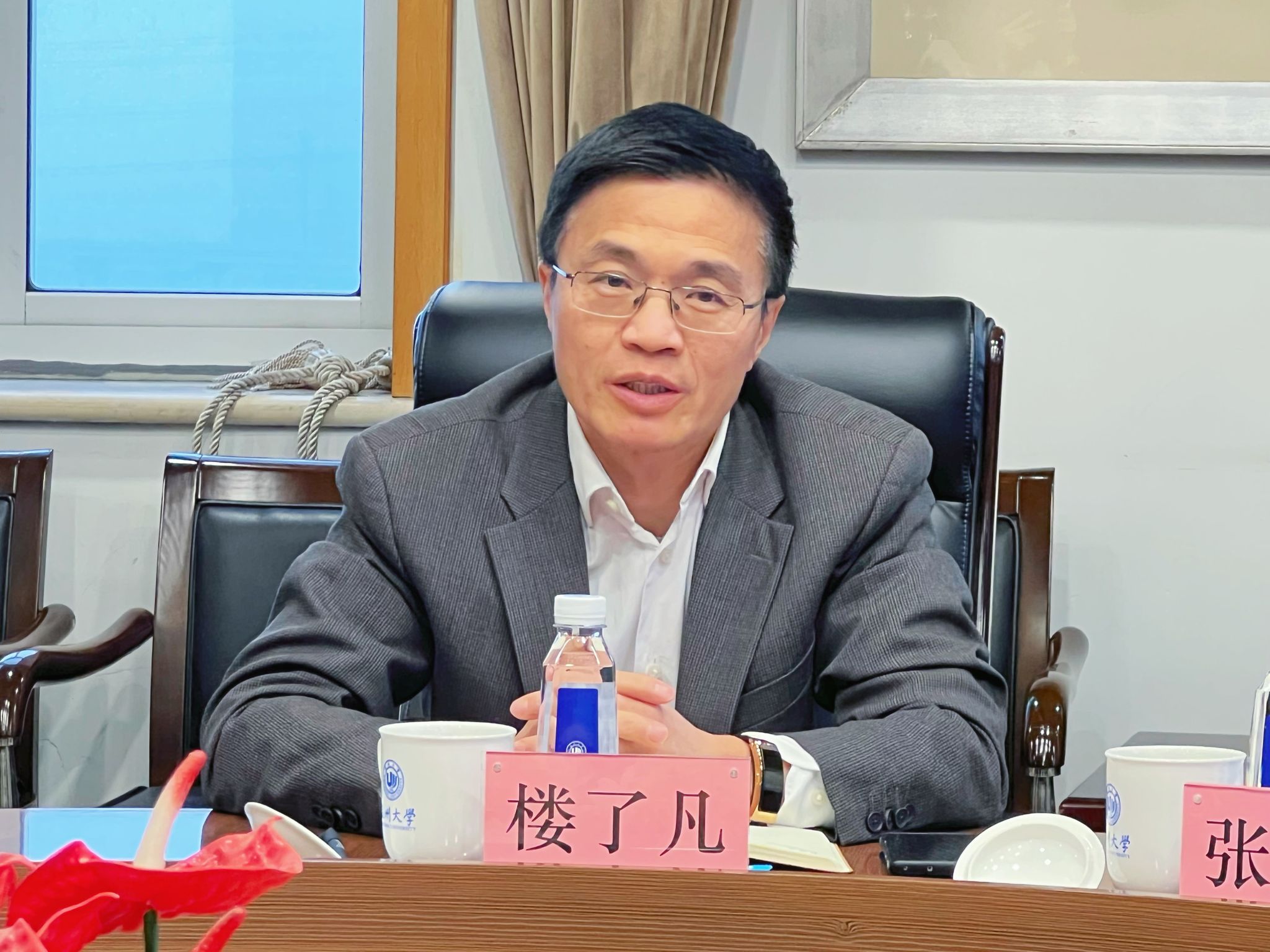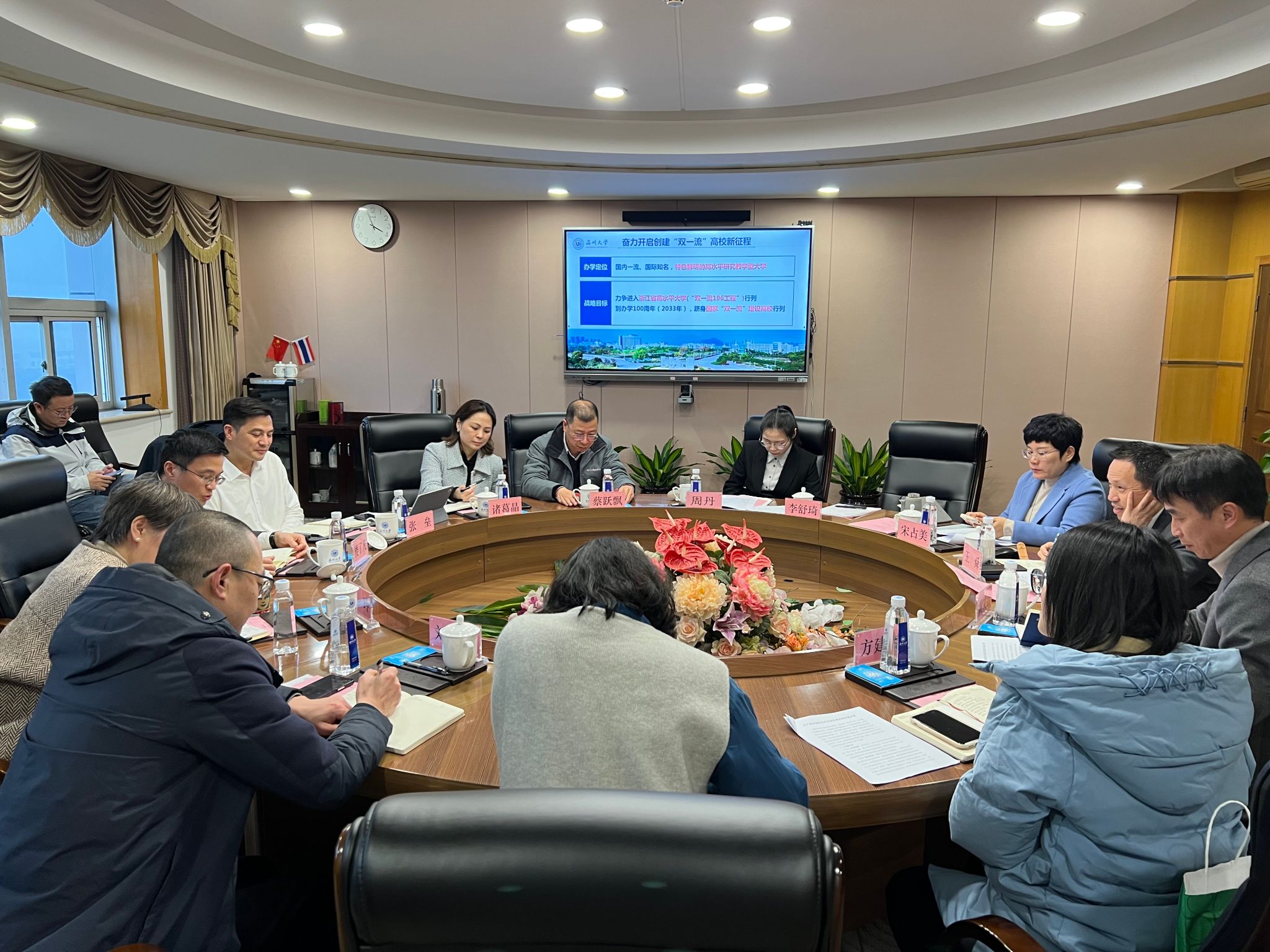 王舜代表太阳成集团tyc33455ccwww对楼了凡主任一行表示热烈欢迎,并介绍学校建设发展情况。他指出,太阳成集团tyc33455ccwww是浙南闽北赣东区域唯一的综合性研究教学型大学,各项事业蓬勃发展并取得瞩目成绩。学校坚持党建引领,从严治党激发新活力;坚持立德树人,人才培养取得新成效;坚持人才强校,团队建设彰显新优势;坚持顶天立地,社会服务展现新作为;坚持守正创新,文化传承打造新高地;坚持开放办学,国际发展提升新能级。王舜强调,太阳成集团tyc33455ccwww正向“双一流”高校奋力迈进,并未温州市的国际化发展贡献力量。