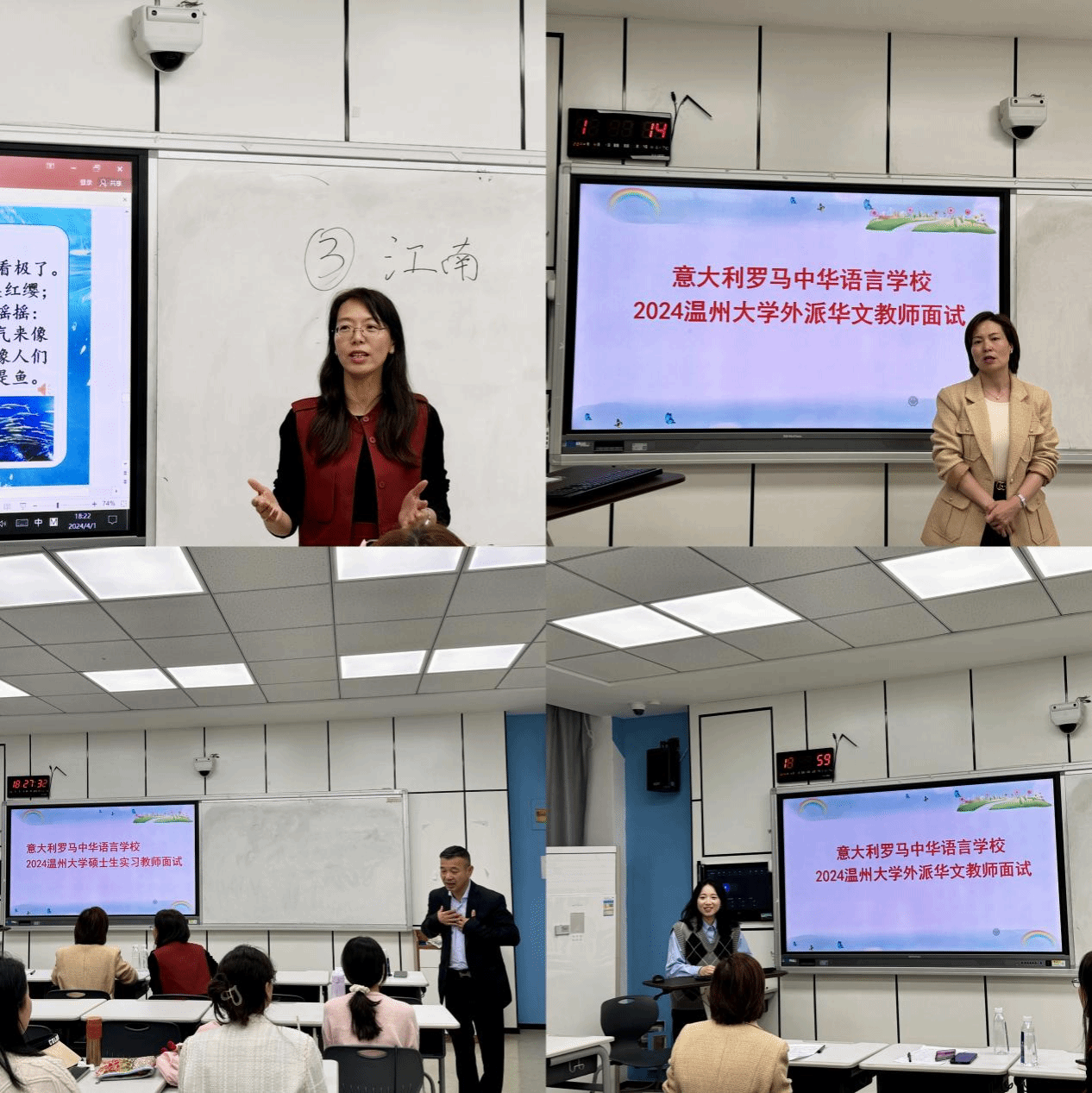 为遴选出优秀的华文教师,为海外华文事业注入源源不断的活力,4月1日下午,公司成功举办了2024年意大利罗马中华语言学校外派华文教师面试活动。意大利罗马中华语言学校董事长蒋忠华、副董事长郑建山、太阳成集团tyc33455ccwww华侨学院经理包含丽及2023年外派华文教师林肖慧担任本次评审委员,公司汉语国际教育硕士研究生们踊跃报名,各显风采。