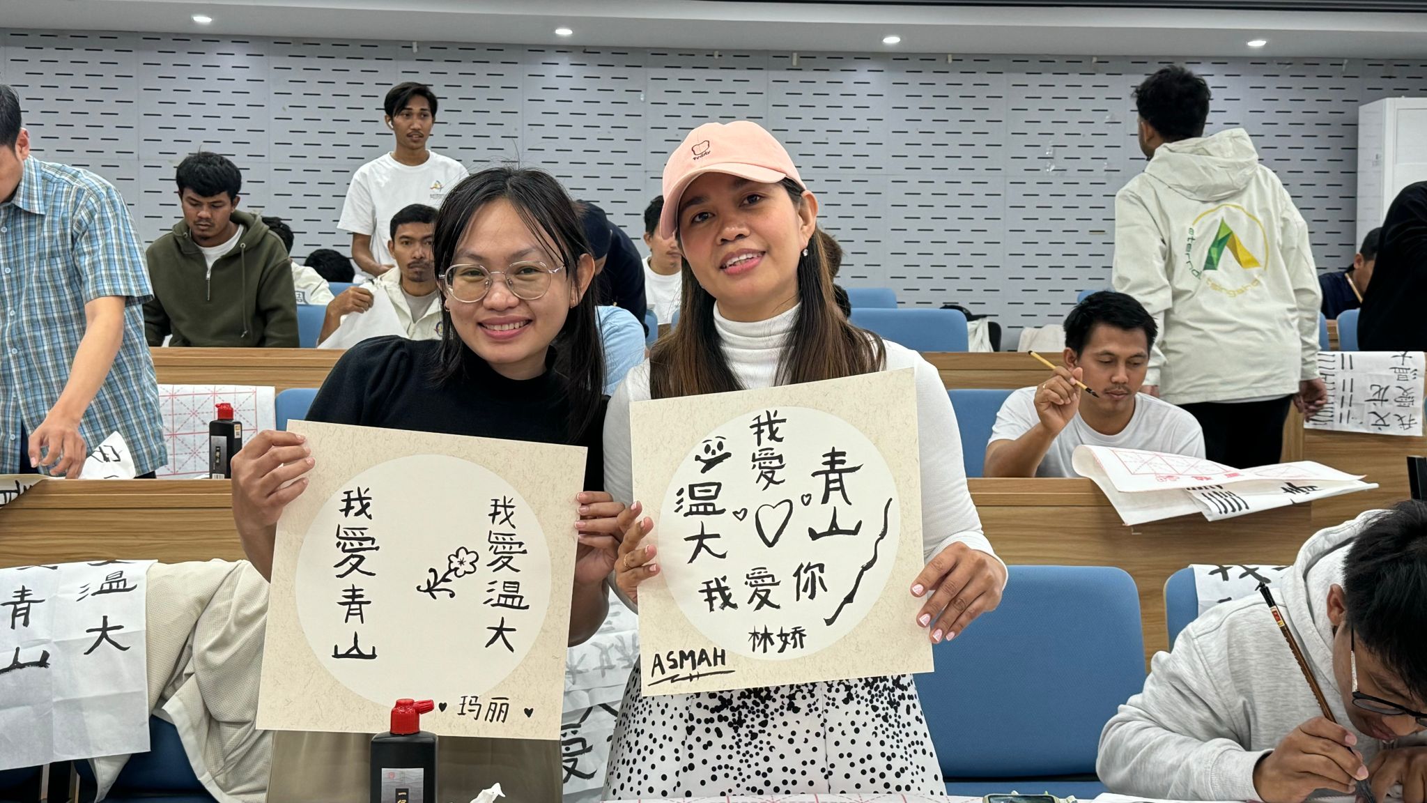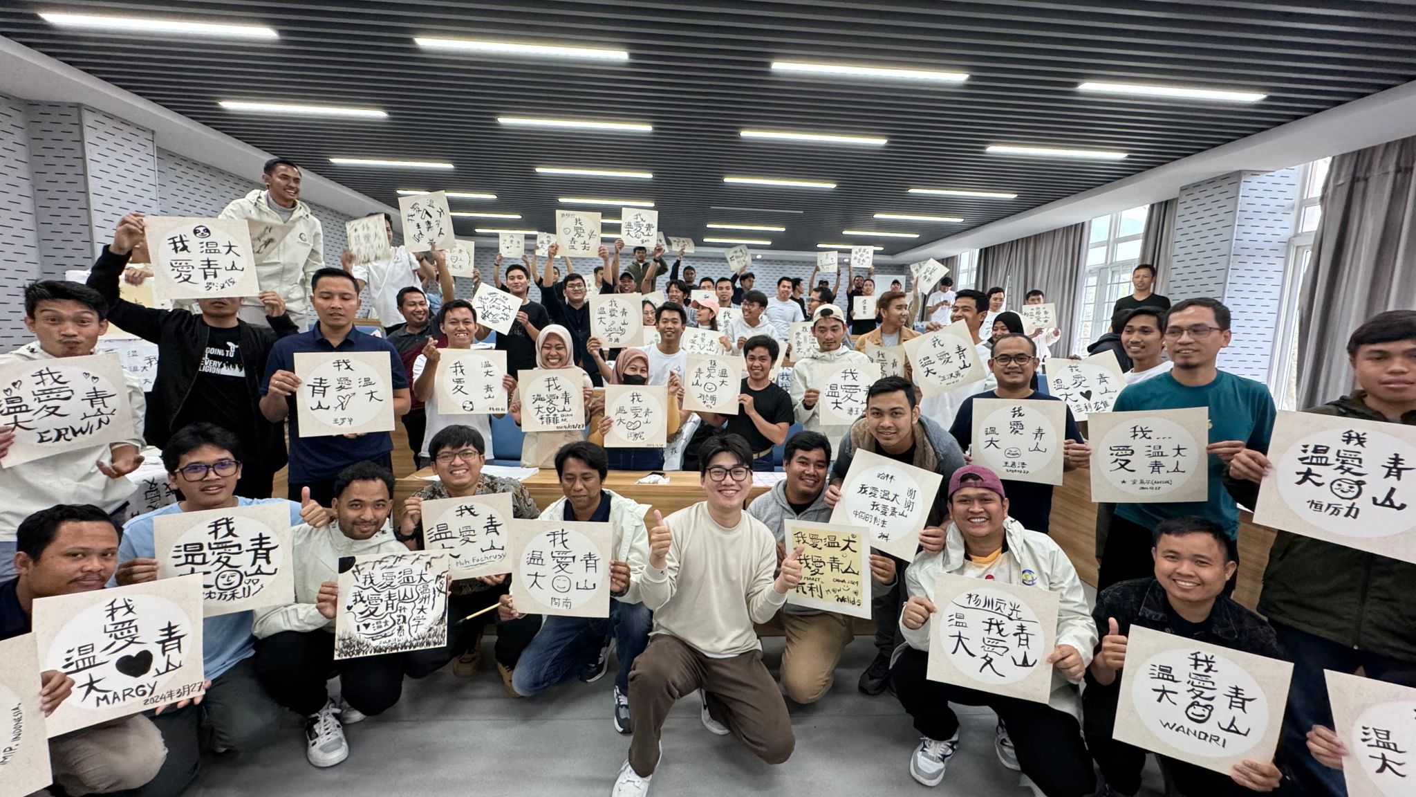 3月27日, “我爱青山我爱温大”为主题的中国书法体验课。青山班员工在曹建挺老师的指导下学习中国书法的基本技法,如笔法、墨法、纸张的放置等。他们用笔墨书写出“我爱青山我爱温大”的字样,表达了员工们对公司和温大的热爱之情。