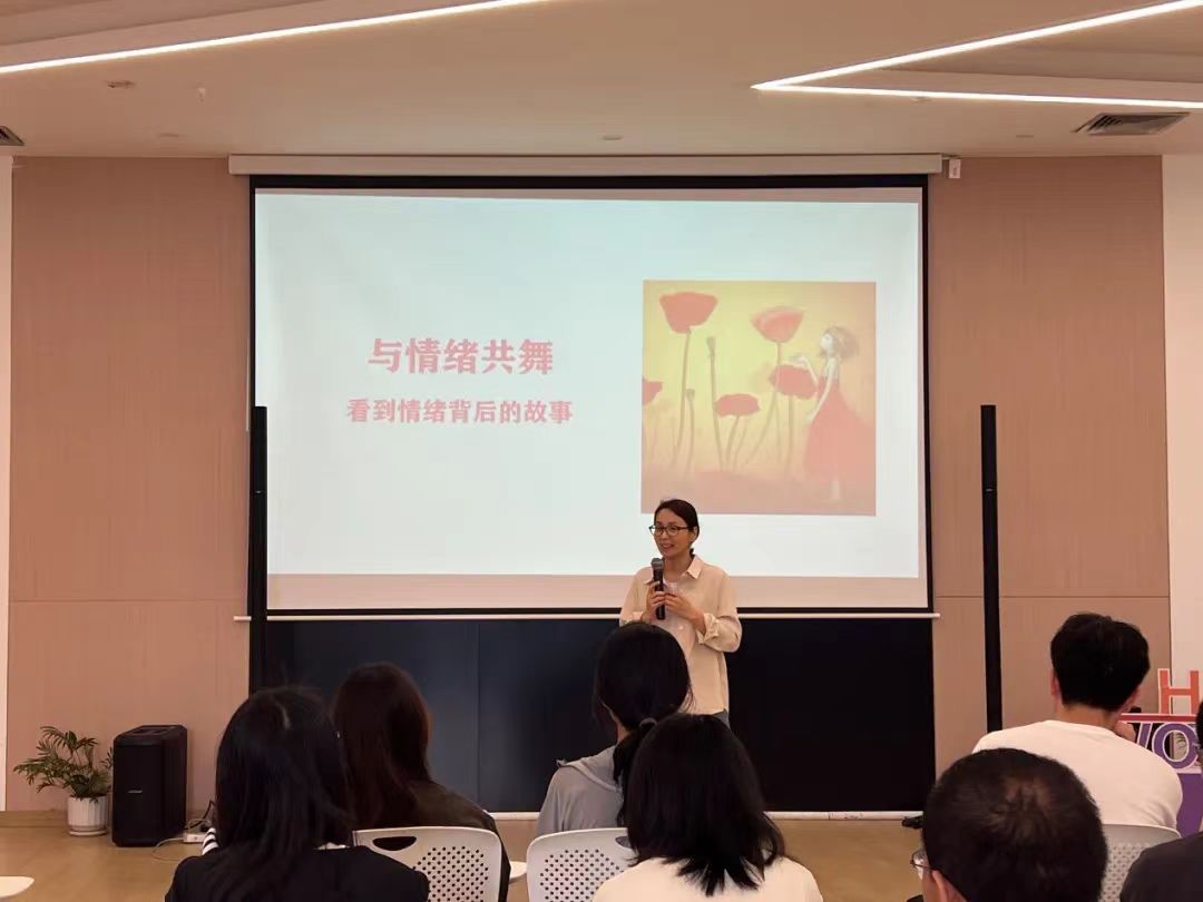 王梦娟老师首先通过播放了一名男性因逆行被交警拦截,情绪激动至极而萌生了跳河想法的视频,引导员工深刻体会到情绪管理的重要性。接着,王老师分别从情绪的认知、情绪的表达、情绪的调节等方面,帮助同学们理解情绪的种类、其产生的根源以及它们对个人行为产生的深远影响,并鼓励大家通过彩笔和画纸创造并分享自己的情绪故事,帮助同学们进一步深化对情绪的多元认知,避免情绪的压抑或过度的宣泄,学习如何以健康的方式表达情感,掌握一系列实用的情绪调节技巧,如深呼吸、正念冥想和积极心理建设等。最后,王老师与同学们进行一一互动,并针对同学们在情绪管理方面的问题给予指导和建议。