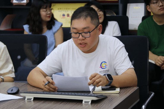 学工办主任刘天代表科室汇报了暑期员工工作情况,并对新学期迎新工作、管理制度建设、员工活动品牌建设等工作进行了详细介绍。
