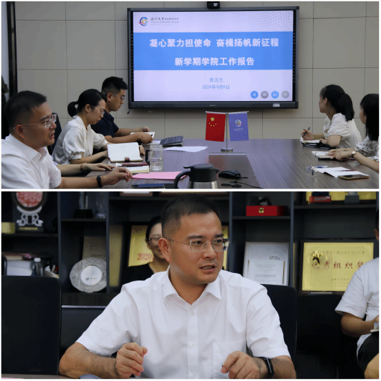 会上,夏远志经理作题为《凝心聚力担使命 奋楫扬帆新征程》的新学期工作报告。夏经理结合国家、省、市及学校对来华留学教育工作的战略定位及工作要求,进一步明确了学院的目标定位。接着他从团队力量、组织架构、员工结构、团队建设、校地合作等方面详细介绍了学院的发展现状。最后夏经理结合学校发展规划及学院发展现状提出学院未来发展的三大目标,对针对学院三大目标提出8项举措。他希望全体教师凝心聚力、携手奋进、共同谱写学院发展新篇章。