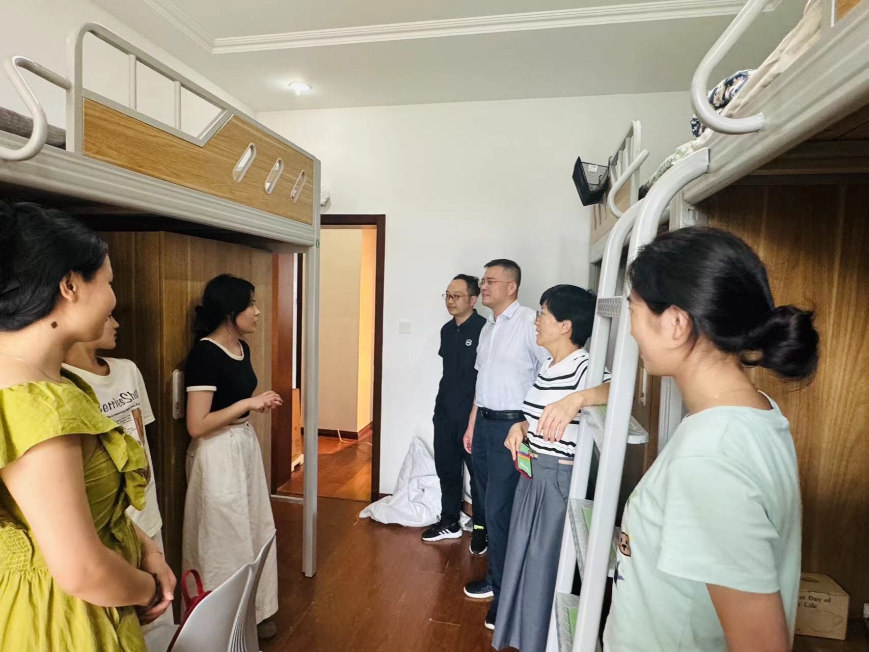 在新生们安顿好行李后,学院领导和老师们来到了员工宿舍,进行走访慰问。他们亲切地与新生们交谈,了解他们的生活情况和需求,为他们送上了温暖的问候和祝福。学院领导鼓励新生们尽快适应新的环境,积极融入到学院这个大家庭中,努力学习,不断进步。