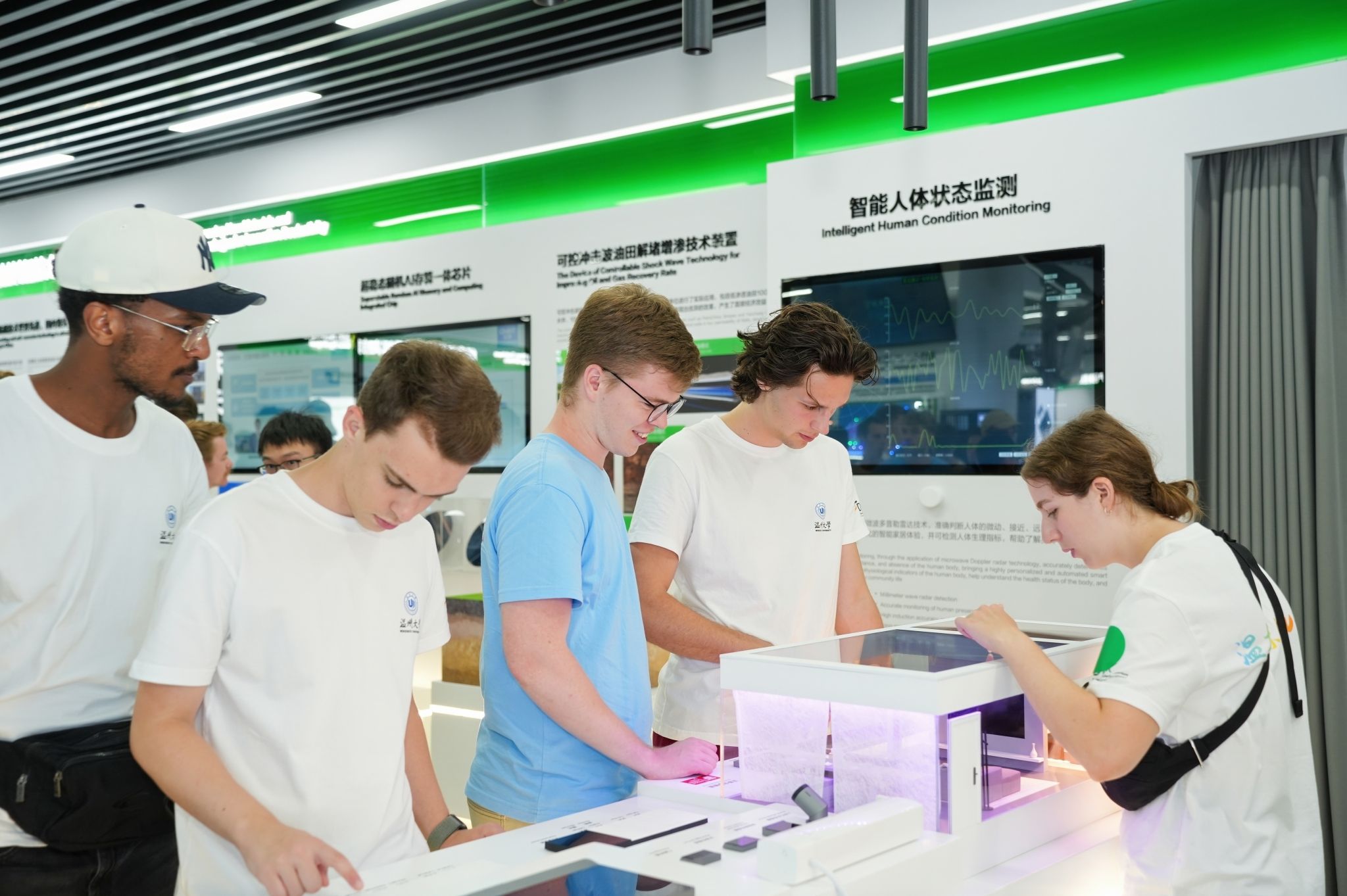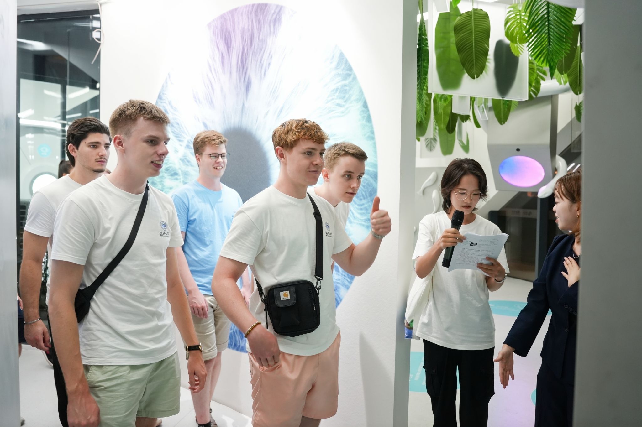 最后,德国青年员工们一行前往全国唯一的眼视光产业创新综合体——中国眼谷参观学习。科技局信息研究院潘栩副经理带领他们参观了新质生产力展厅和科普馆,了解中国新型技术和研究成果,并通过趣味性的体验设备学习关于眼睛的各种知识,德国青年员工们争相体验,纷纷点赞。