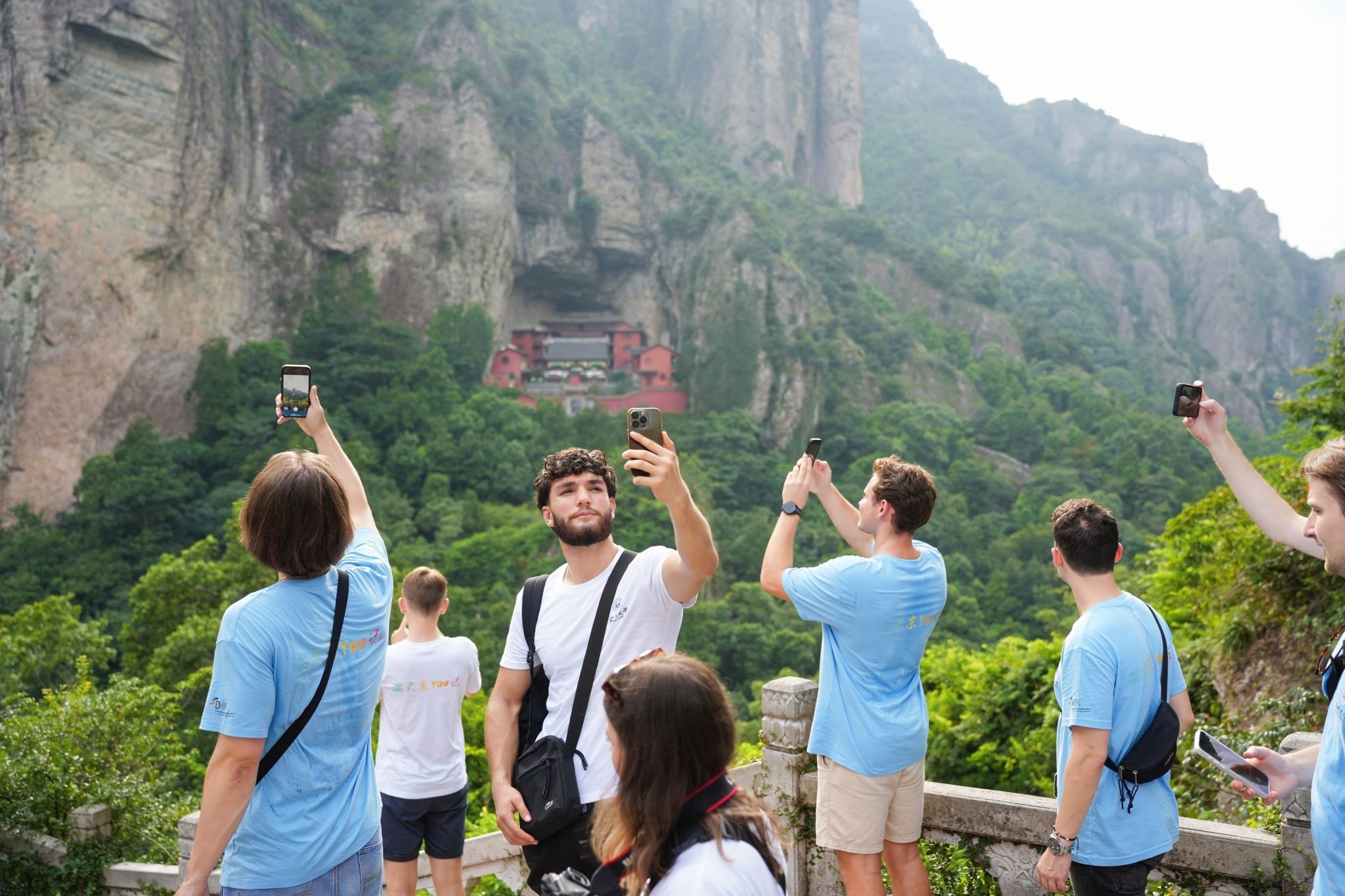 德国DHIK青年温州暑期学校的第一站是首批国家5A级景区——雁荡山森林公园。德国员工们首先参观雁荡山博物馆,了解雁荡山地质与生态情况等,而后进入雁荡景区,那一幕幕如诗如画的景色让他们陶醉。德国青年员工们在果盒桥欣中国第二大剧——越剧,感受中国戏曲的独特妆容和婉转悠长唱腔。接着游览象征忠贞不渝爱情的夫妻峰和以悬崖叠嶂、奇峰怪石与碧潭清润而著称的灵峰,并登上傲然挺立的东西瑶台,欣赏群山如黛和涧水潺潺。“Wonderful!”“Amazing!”......德国青年员工们不禁感叹温州山水的灵秀之气,被大自然的鬼斧神工所折服。
