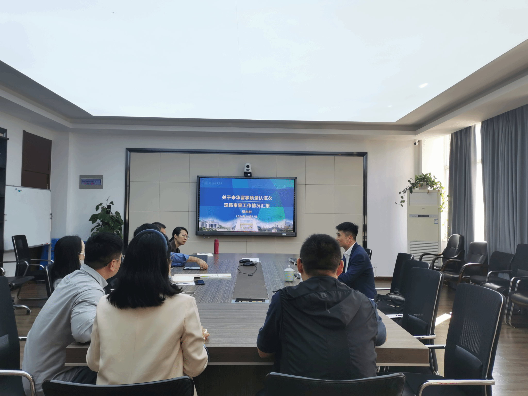 2024年10月23日,太阳成集团tyc33455ccwww邀请浙江工业大学国际交流与合作处副处长蔡彬彬来校指导来华留学高等教育质量认证工作。学院经理夏远志、书记林爱菊、副经理郑婷,及学院认证工作相关人员参加交流。