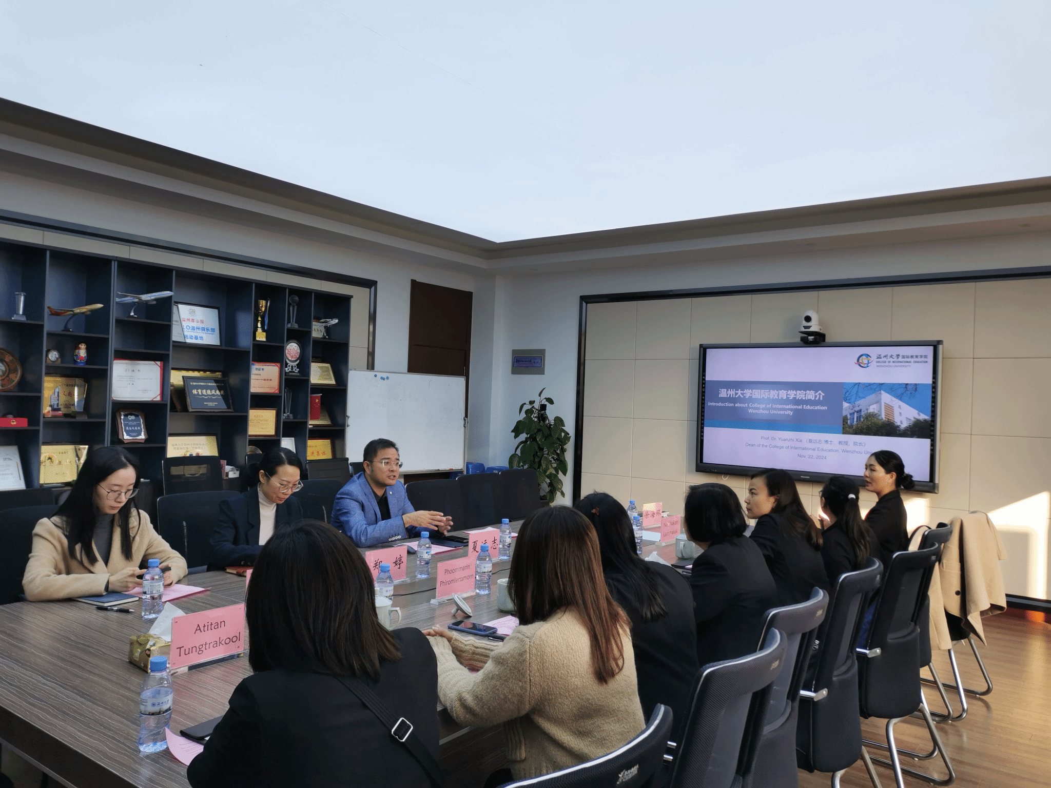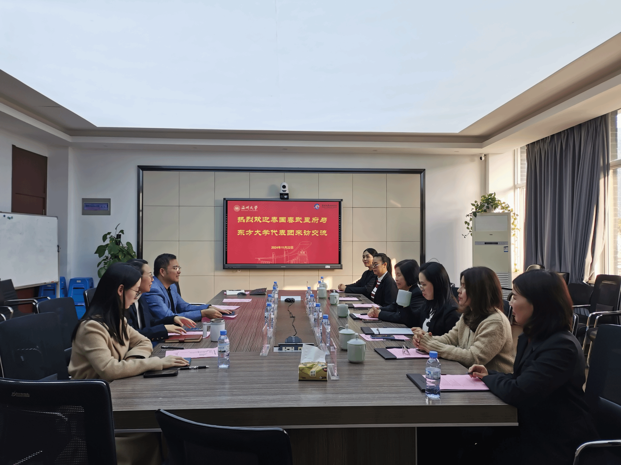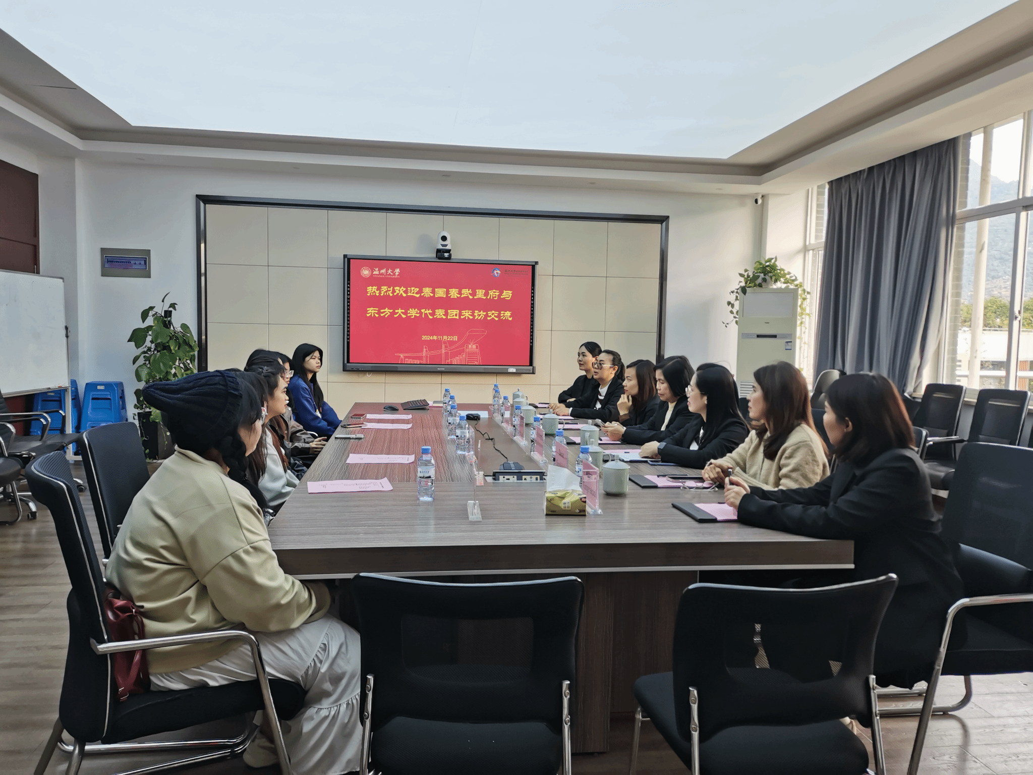 会谈结束后,泰国东方大学副董事长一行还与参与该项目的泰国员工进行了座谈,了解他们在温大学习的情况。员工们认为:两校的联合培养项目他们不仅为他们提供了专业的语言学习的途径,更能在中国实地感受到了中国文化,促进了对中国文化的理解与认识。