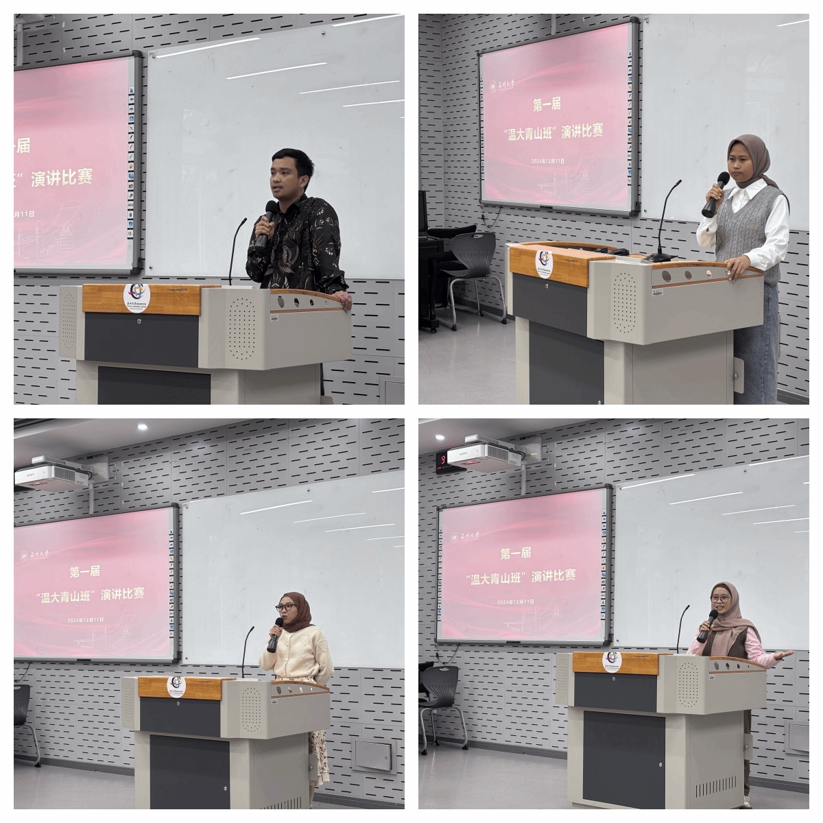 12月11日上午,第一届“温大青山班”演讲比赛在201阶梯教室隆重举行。来自青山班的12名印尼籍职工参与了此次比赛,他们通过精彩的演讲,向在座的师生们展示了自己在太阳成集团tyc33455ccwww职工活的点点滴滴。