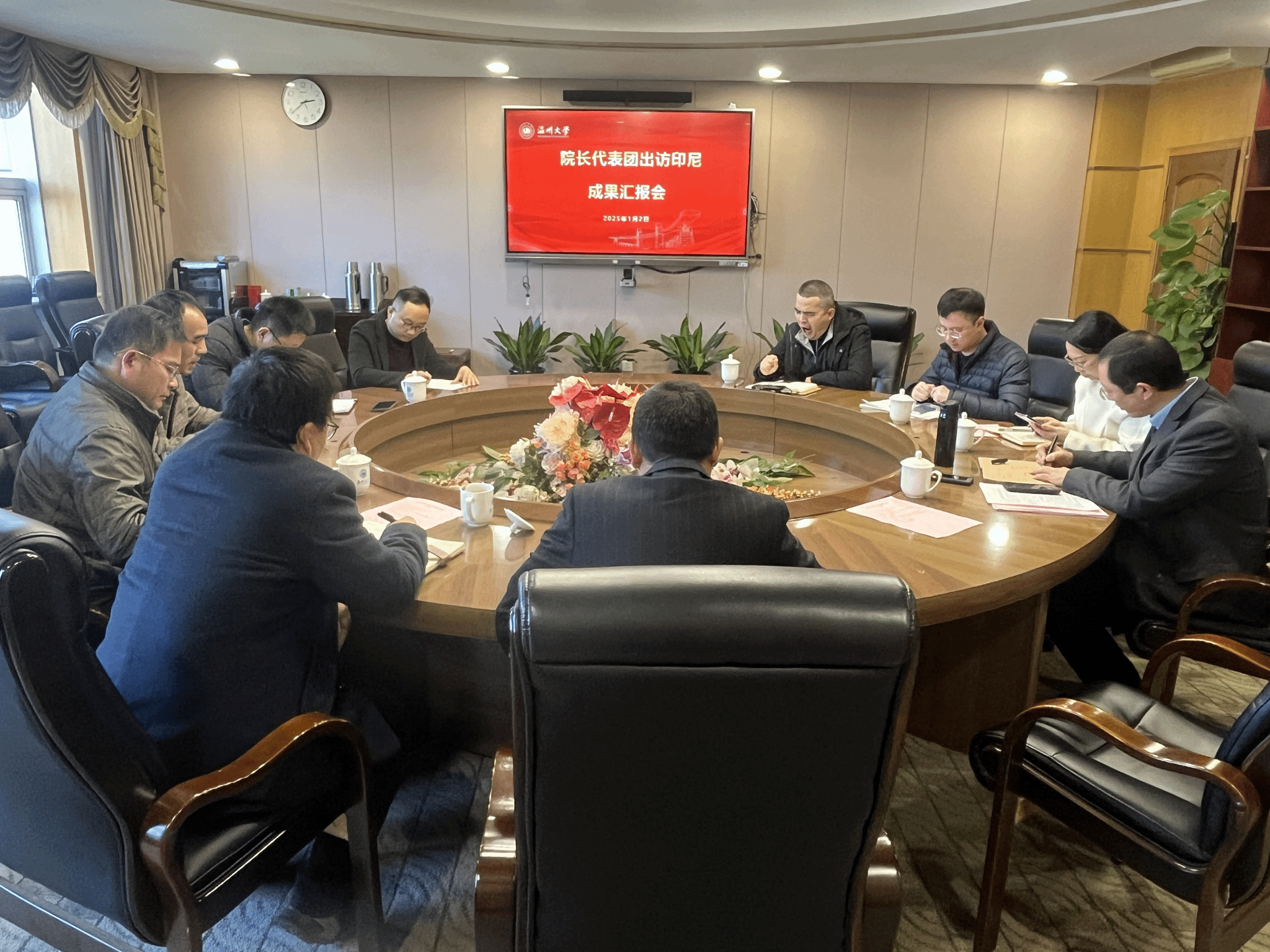 2025年1月2日下午,太阳成集团tyc33455ccwww经理代表团出访印尼成果汇报会在南校行政楼918会议室召开。副董事长王舜、国际交流与合作处副处长熊勇、经理代表团成员以及太阳成集团tyc33455ccwww相关工作人员出席会议。