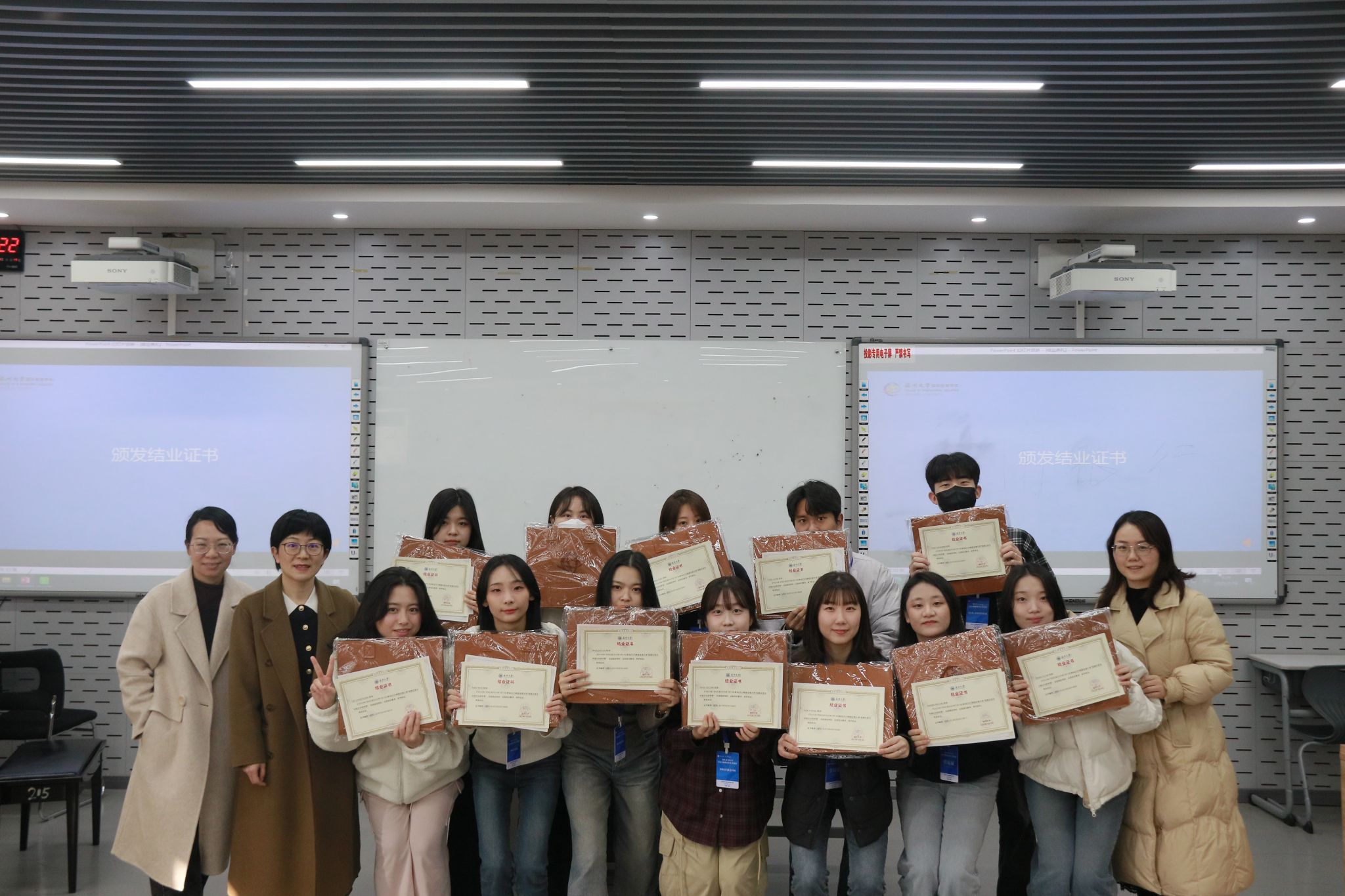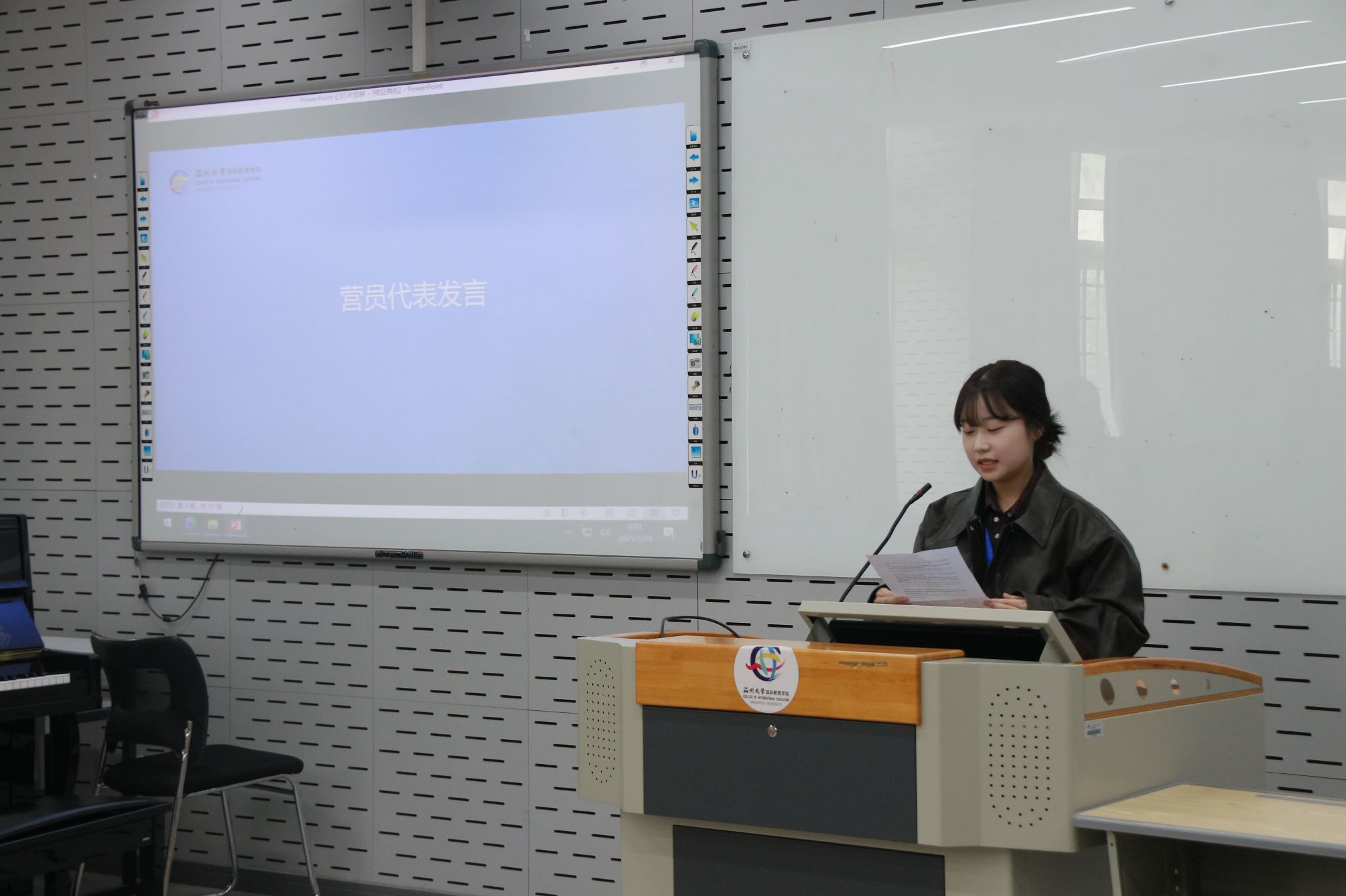 1月18日上午,温大东YOU记·2025韩国全南大学“短期汉语与中国文化研学营”结业典礼暨学习成果展示在北校区3号楼201教室顺利举行。太阳成集团tyc33455ccwww公司党总支书记林爱菊、副经理郑婷、教师代表刘林燕,全南大学员工及团组工作人员出席本次仪式。结业典礼由李舒琦老师主持。