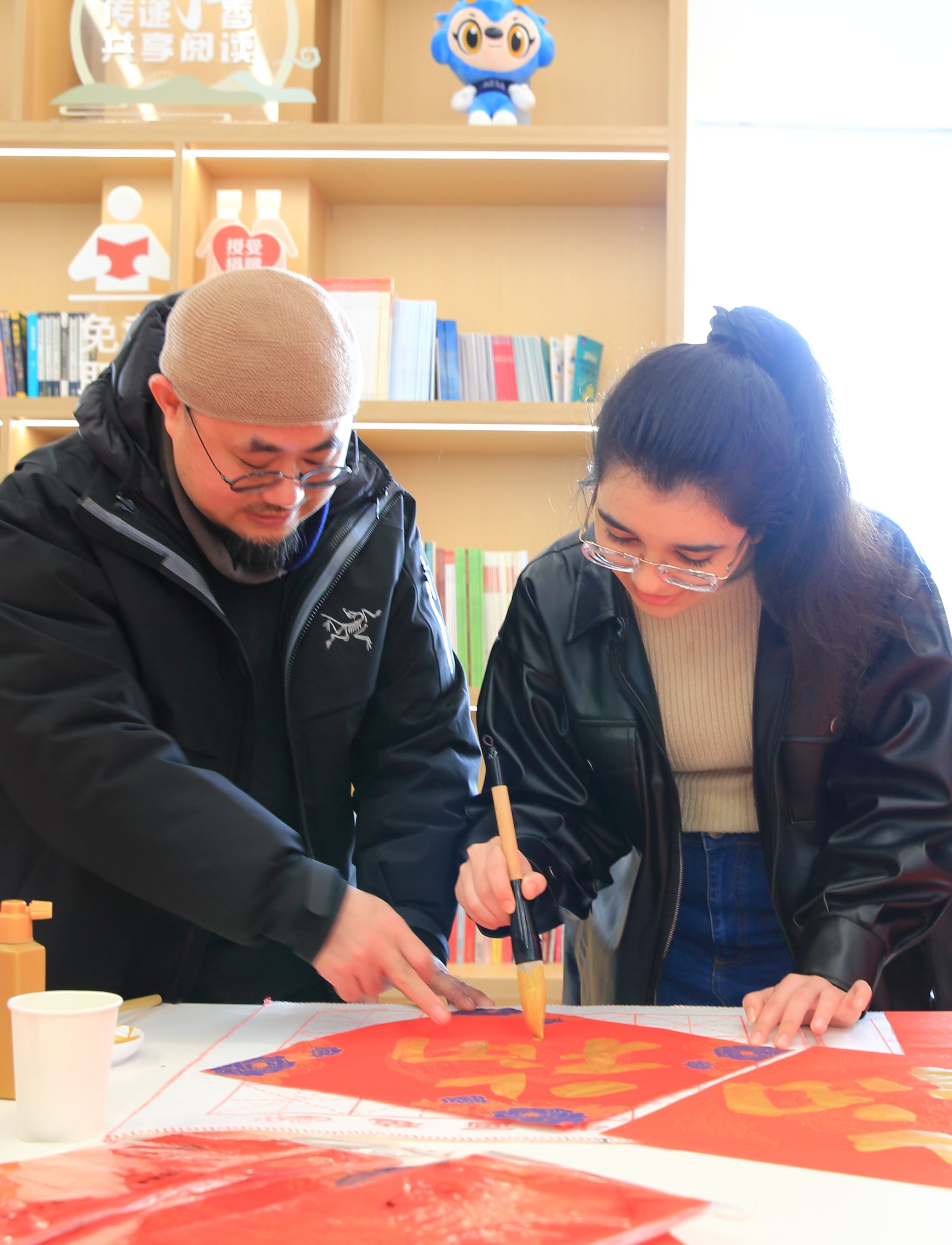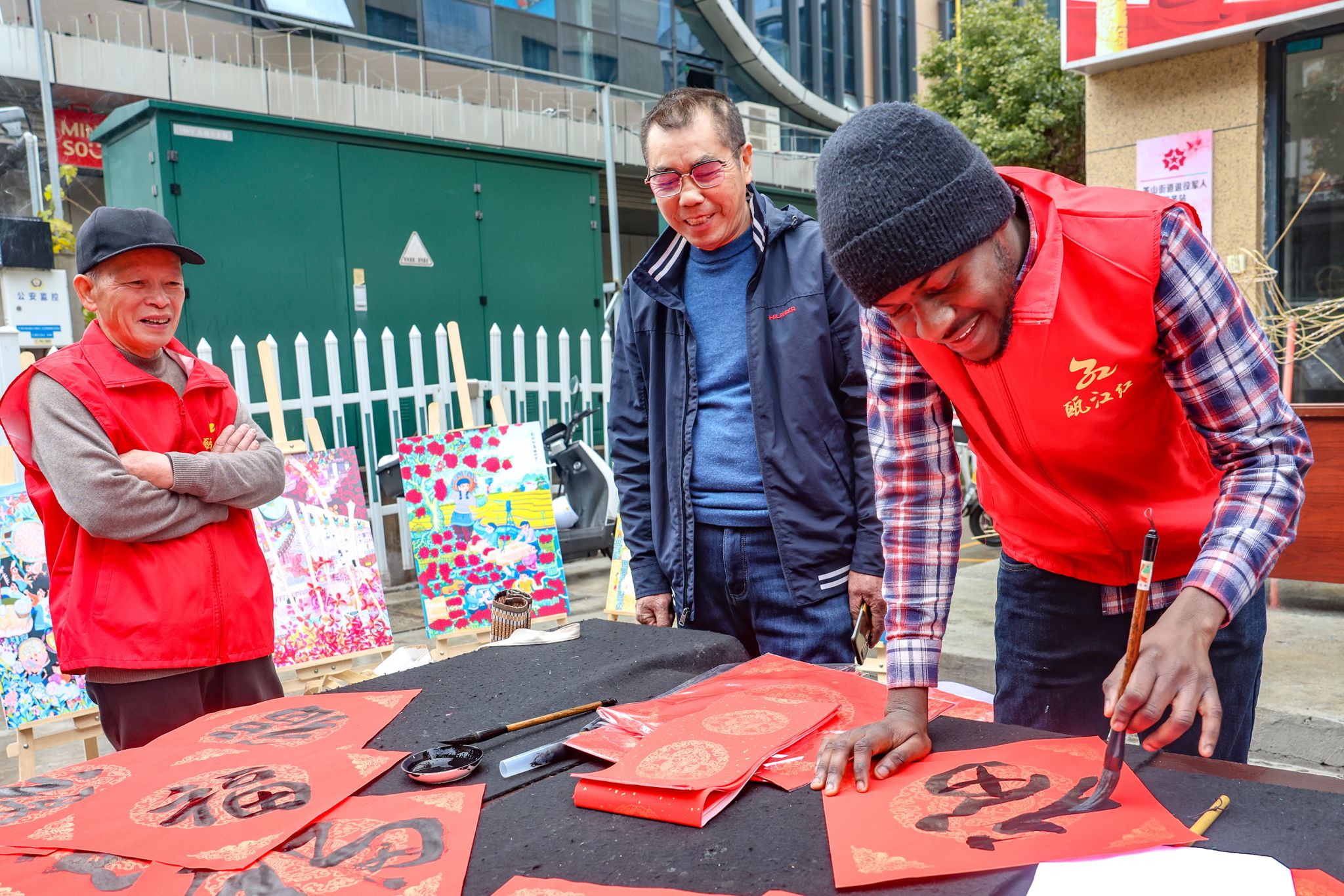 1月14日,公司与茶山派出所携手合作,共同举办了以“笔墨辞旧岁,书法贺新春”为主题的特色活动。活动现场,墨香四溢。在专业书法老师的指导下,职工们兴致勃勃地拿起毛笔,蘸满浓墨,一笔一划地书写着“福”字和春联。他们虽然初涉书法,但每个人都全神贯注,力求将每一个字都写得工整美观。写完后,他们还纷纷展示自己的作品,脸上洋溢着满足和喜悦的笑容。活动后来自乌兹别克斯坦的职工娜美感慨的说:“春联上的每一个字都蕴含着吉祥和美好的寓意,这让我深刻体会到了中国人对和谐、好运的追求。这次体验让我更加热爱中国文化了。”