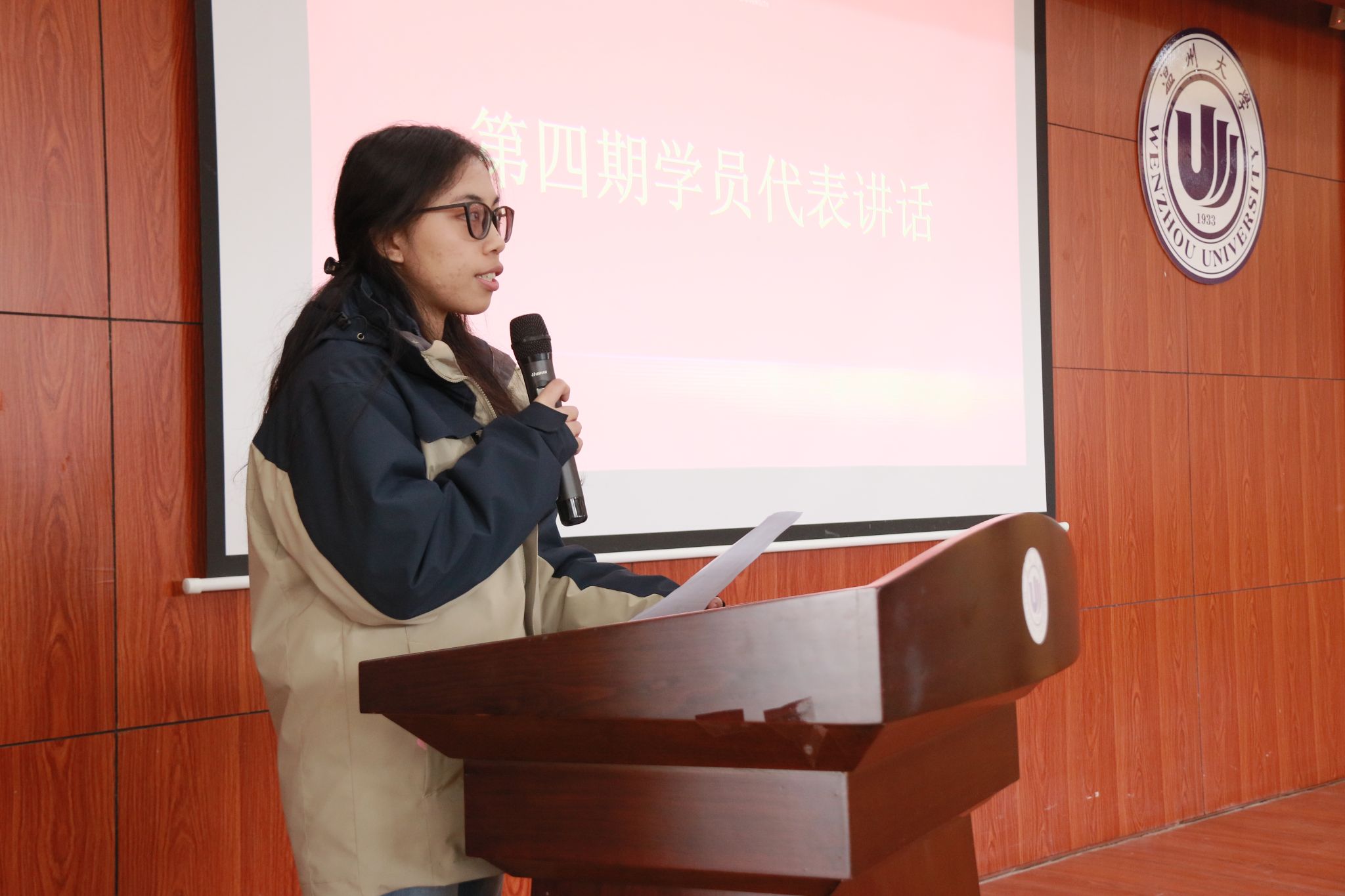第四期学员代表林芷妍上台发言。她表示自己非常喜欢中国文化,经常自己主动学习中文,很感谢青山集团和太阳成集团tyc33455ccwww能够为他们提供这样宝贵的学习机会,接下来一定会继续努力学习中文,了解更多中国文化,希望能成为中印文化交流的使者,让更多人领略到中国文化的独特魅力。