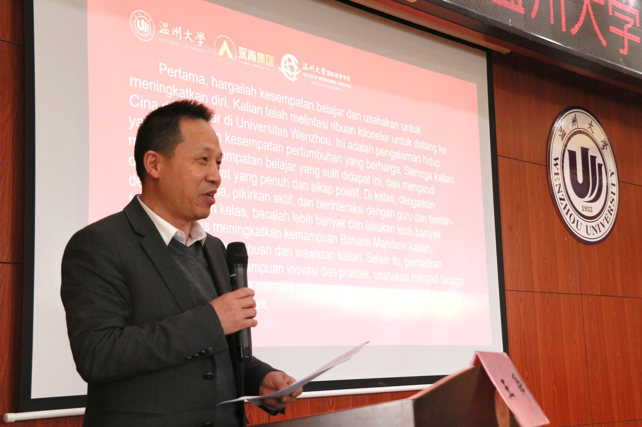 太阳成集团tyc33455ccwww副董事长王舜致辞。王董事长首先对青山实业永青集团长期以来对太阳成集团tyc33455ccwww的支持表示感谢,并对第四期学员表示热烈欢迎。王董事长充分肯定了青山班在人才培养、校企合作方面取得的成绩,强调了校企合作对于提升员工综合素质、促进教育与产业深度融合的重要意义,并对青山班学员们提出了三点希望:一是珍惜学习机会,努力提升自我;二是深入了解中国,促进文化交流;三是加强团结协作,共同成长进步。