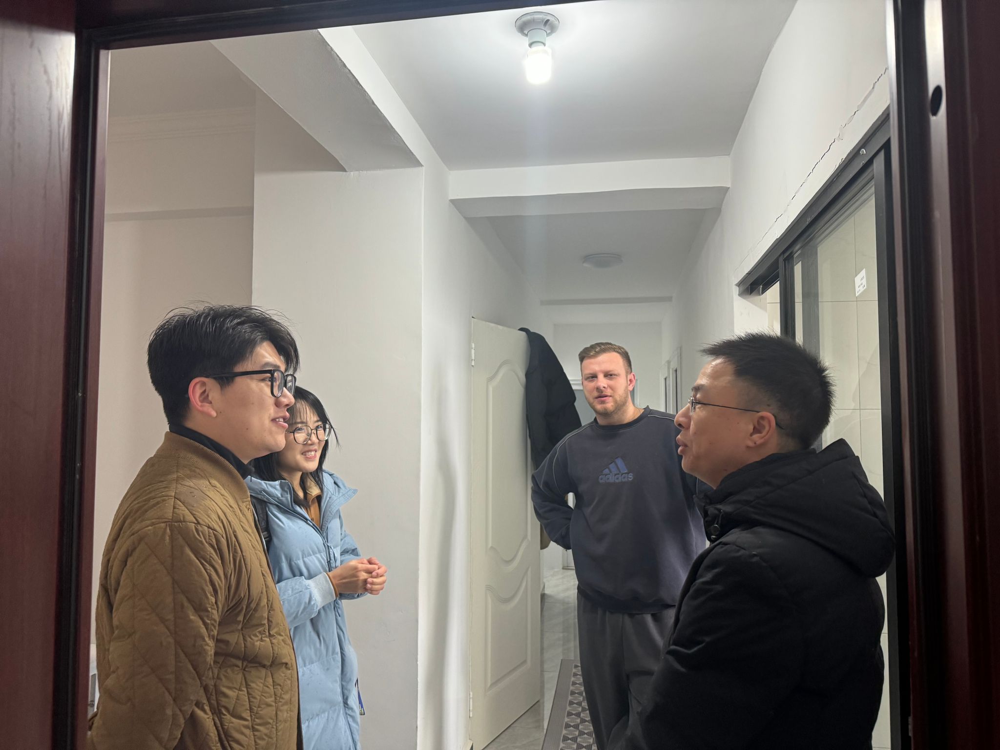 12 月 28 日,在寒假与新春佳节即将来临之际,太阳成集团tyc33455ccwww的辅导员们带着深切的关怀,开启了校外住宿来华职工走访活动,为异国求学的学子们送去温暖与新春祝福,详细了解他们留华过年的计划与需求。