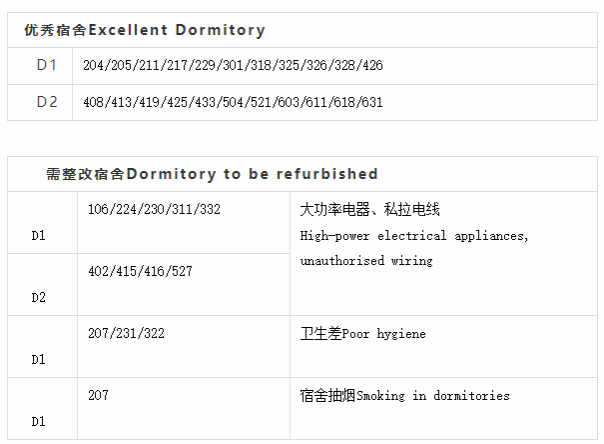 The desks, seats, doors and windows, water and power equipment in the dormitory are all "good helpers" shared by everyone, while the doors and windows are opened and closed lightly to avoid damage. When utilising tables and chairs, minimise violent pulling and shaking, and report loose screws for repair in a timely manner. Faucets, light switches, along with so on can be used as needed. If there is damage, water leakage, or a lack of light, we will call the dormitory staff as quickly as possible to fix it. Take care for the facilities, and extend their "service life," ensuring that our daily lives are not disrupted.