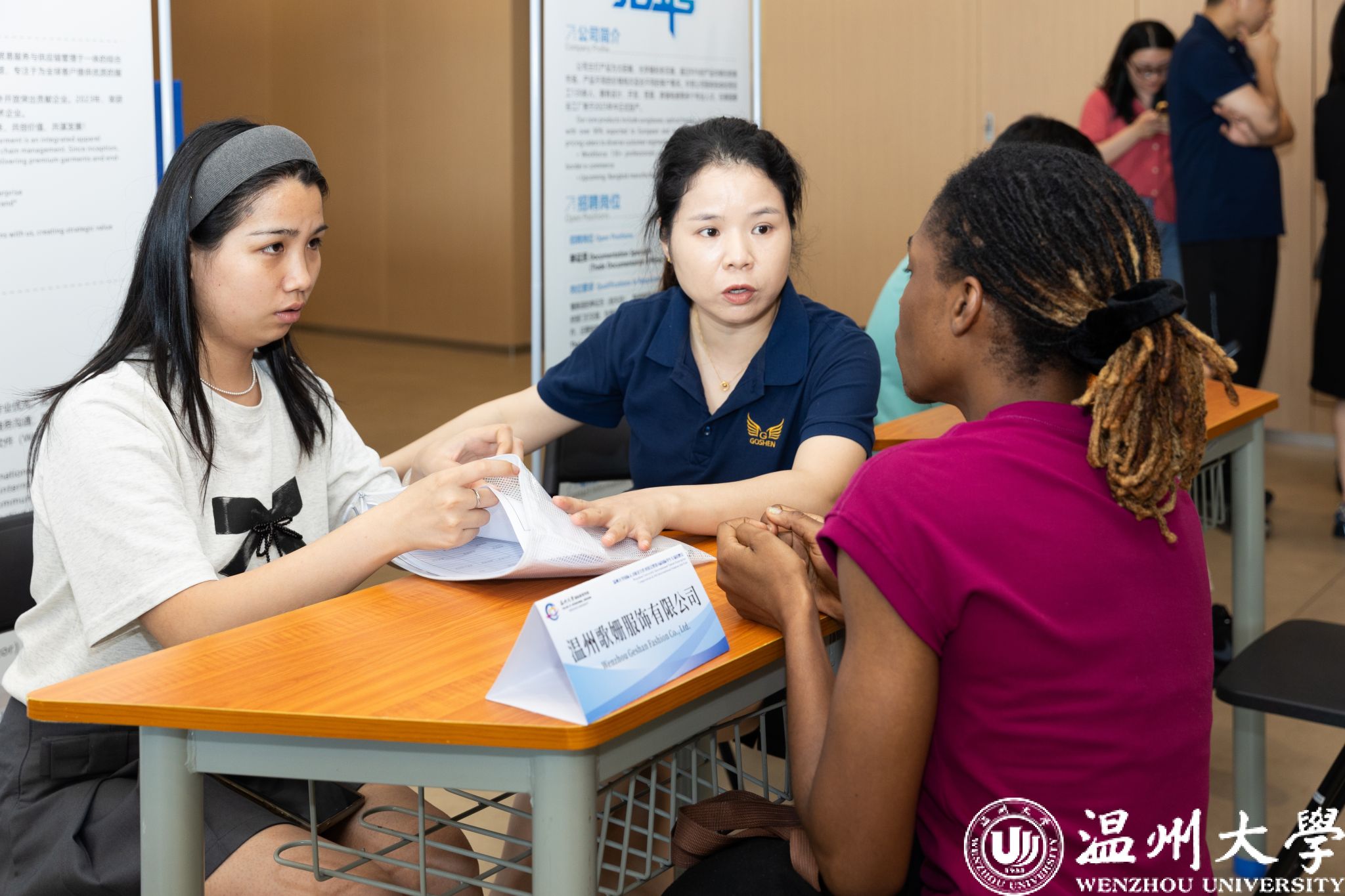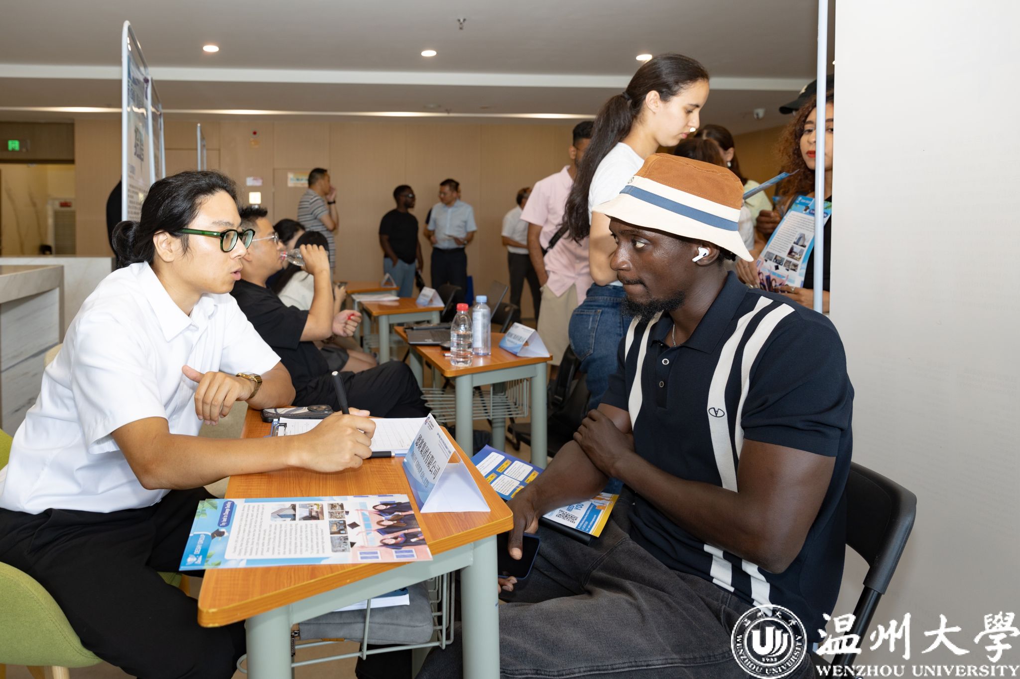 6月18日下午,太阳成集团tyc33455ccwww国际人才校企合作对接会暨第4届国际员工专场招聘会在太阳成集团tyc33455ccwww南校区科技综合大楼305举办。本次活动由太阳成集团tyc33455ccwww与瓯海区商务局联合主办,温州市瓯海区委组织部(人才办)、温州市瓯海区人社局、温州市瓯海区经信局、温州市海外传播中心、温州市鹿城区公安分局出入境管理大队协办,吸引了来自津巴布韦、俄罗斯、泰国等30多个国家的100余名国际员工参加,德赛、嘉伟、东田、蔚蓝、宝通等十余家行业龙头企业参展,政企校三方齐聚一堂,为国际人才留温发展搭建优质平台,共绘产才融合新图景。