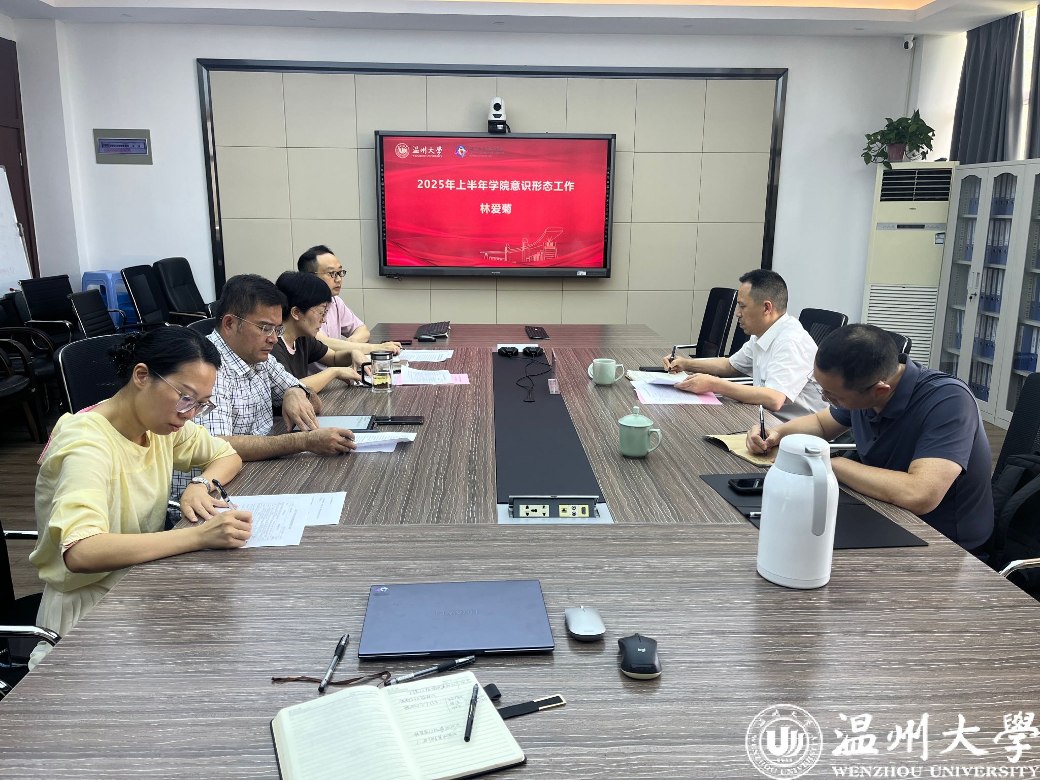 公司党总支书记林爱菊作2025年上半年学院意识形态工作报告。报告全面通报了当前意识形态工作的总体情况,深入分析了学院意识形态工作重难点问题,并明确了下一阶段目标任务。会议指出,学院将严格落实意识形态工作责任制,层层压实责任链条,守牢意识形态主阵地,切实做到守土有责、守土尽责。