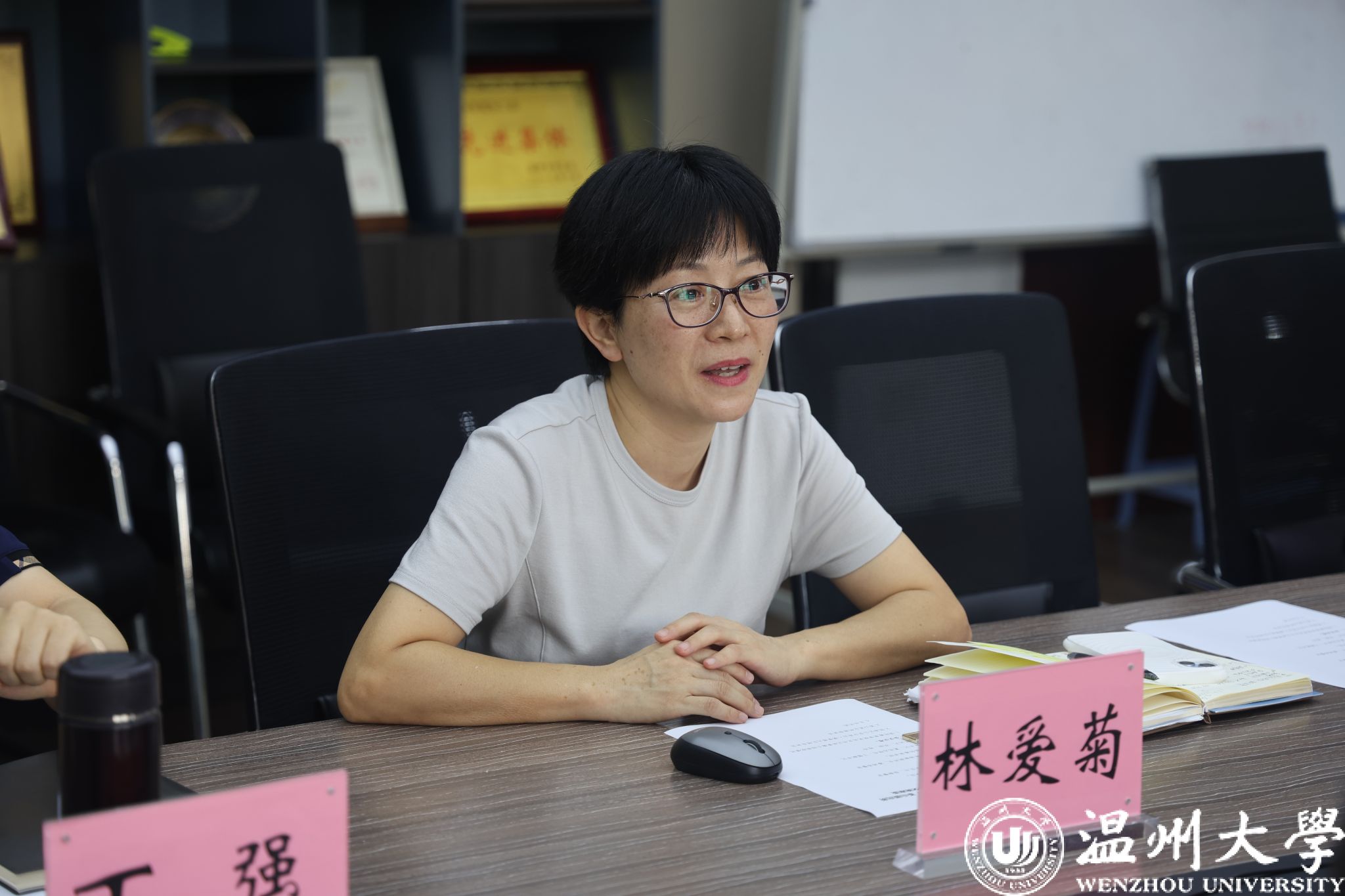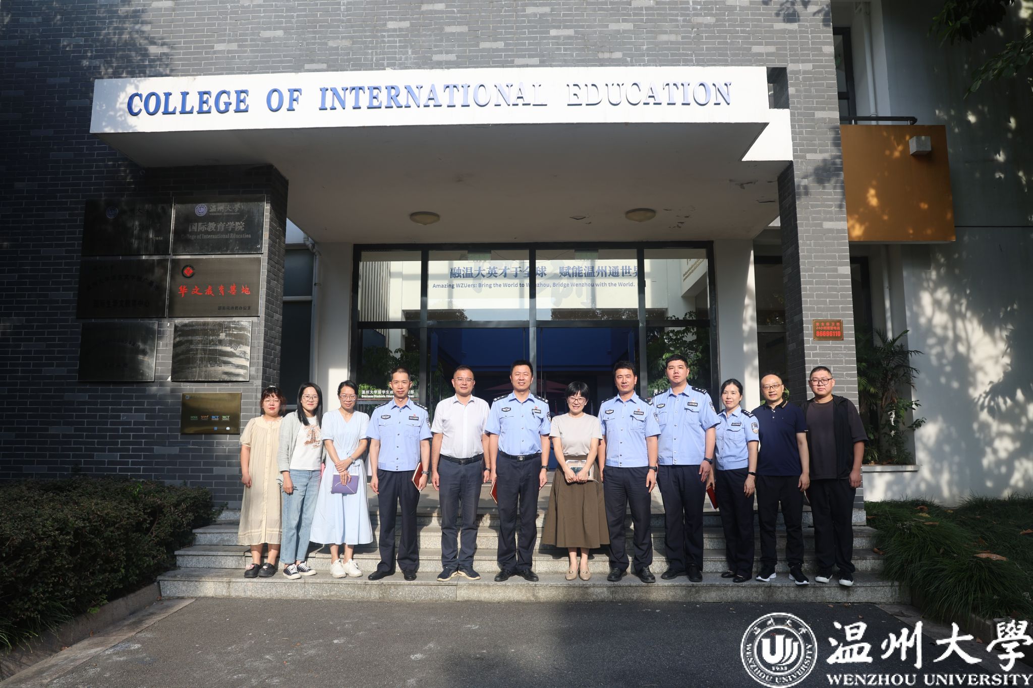 为进一步深化警校合作,优化涉外管理服务,助力国际人才培养,9月3日下午,温州市公安局瓯海区分局出入境管理大队金熙博大队长、姜逸副大队长、徐静警官,茶山派出所陈海敏副所长、潘鸿浩警官来公司交流座谈。公司党总支书记林爱菊、经理夏远志、副经理郑婷、副书记丁强及辅导员老师出席座谈会。三方齐聚一堂,就职工签证事务、涉外警务服务、安全保障等议题深入探讨,共绘警校联动新图景。