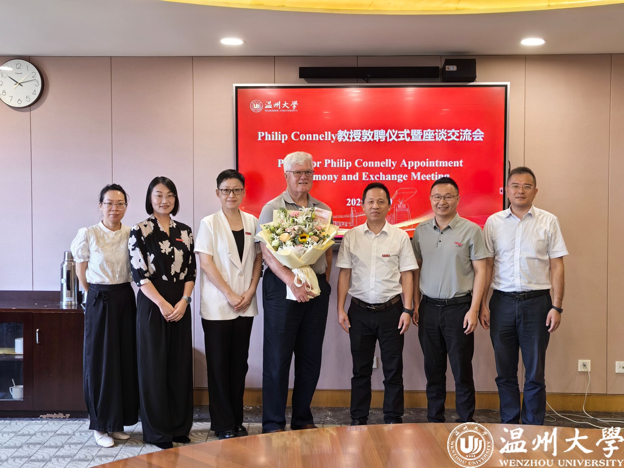 王舜副董事长代表学校对Philip Connelly教授的加盟表示热烈欢迎。他强调,Philip Connelly教授作为温州肯恩大学创建的亲历者与重要推动者,为中美教育合作作出卓越贡献,他不仅拥有丰富的教学与研究经验,更在中外合作办学、团队建设、人才培养等方面成果卓著,希望在Philip Connelly教授指导下,学校在国际员工招生体系优化、公司产品质量提升、学科建设及国际化管理服务升级等方面实现新突破。