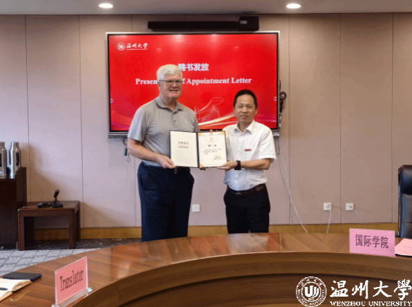会上,夏远志详细介绍了Philip Connelly教授的学术背景、工作经历和主要贡献。王舜副董事长代表学校与Philip Connelly教授签订了聘任协议,并颁发了客座教授聘任证书。