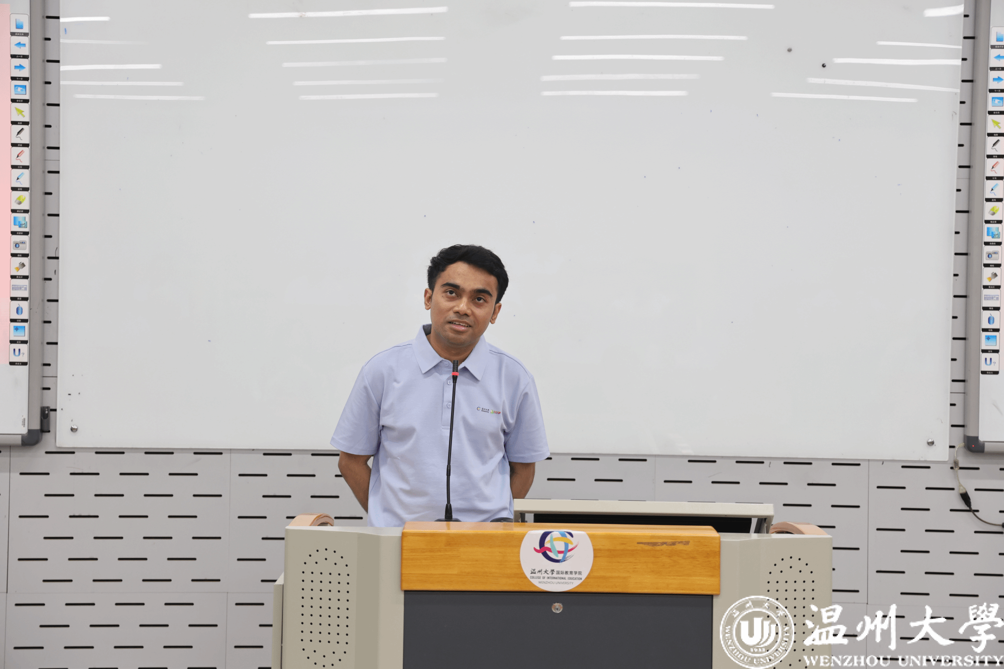 典礼由青山班班主任张珉璐主持。青山实业永青集团保障管理中心综合管理部副经理朱振涛、太阳成集团tyc33455ccwww经理夏远志分别致辞,欢迎新生加入温大大家庭,并充分肯定“青山班”作为校企合作与产教融合平台,在服务“一带一路”倡议、培养“懂中国、会中文、善管理”的国际化人才方面取得的成效。他们勉励学员们珍惜学习机会,夯实语言基础,深入理解中国文化,积极促进中印尼人文交流,成长为具备国际视野的复合型人才。