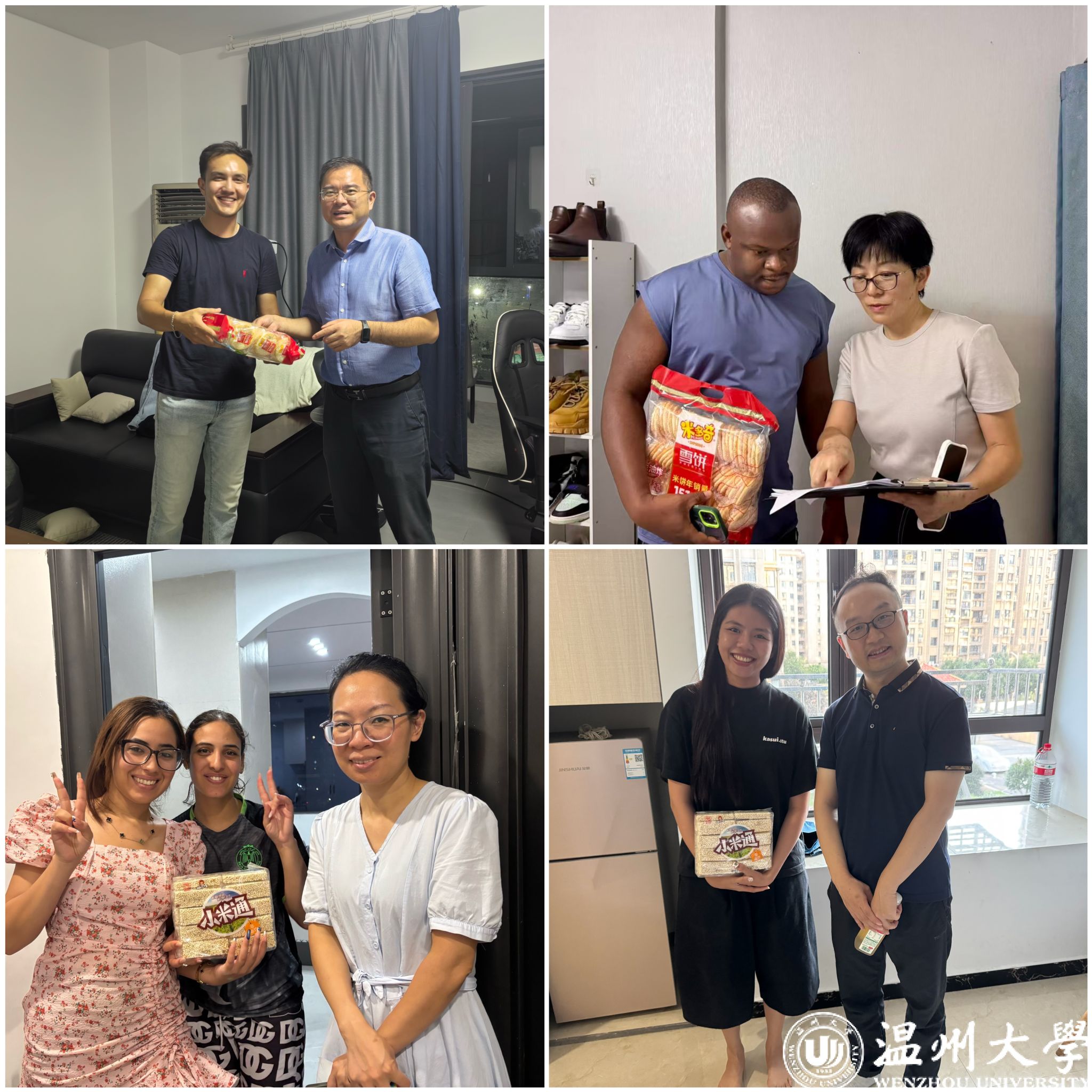此次走访规模大、覆盖广,学院领导带头,党员与行政人员全员参与,创新采用“班子/科长+科员”“不同科室人员混搭”的结对走访模式,组建了8个走访小组。各小组克服员工居住分散、区域跨度大等困难,足迹遍及温州市多个社区,走访了100余名来自越南、哈萨克斯坦、阿塞拜疆、泰国、津巴布韦等国家的新生和老生。