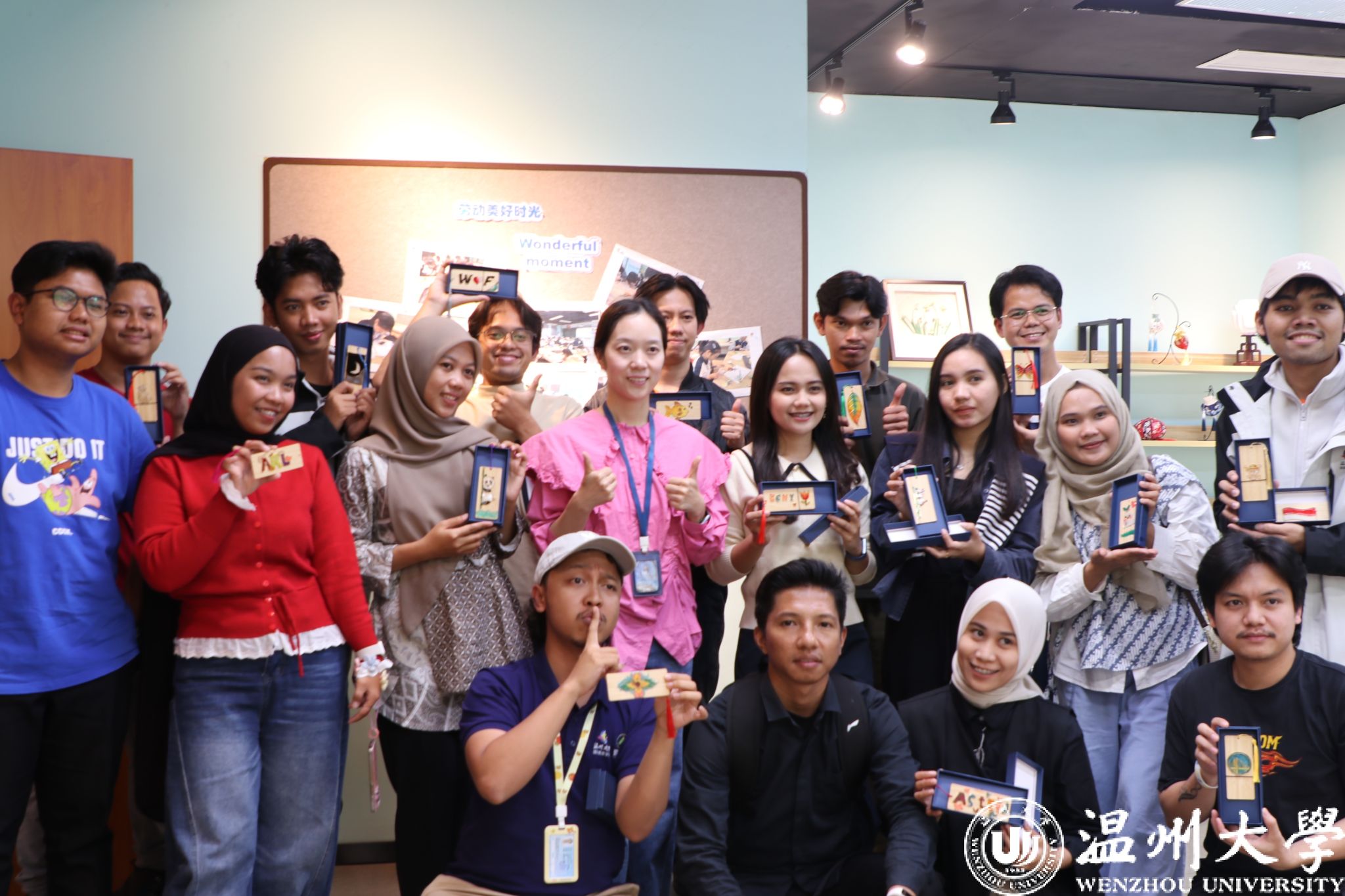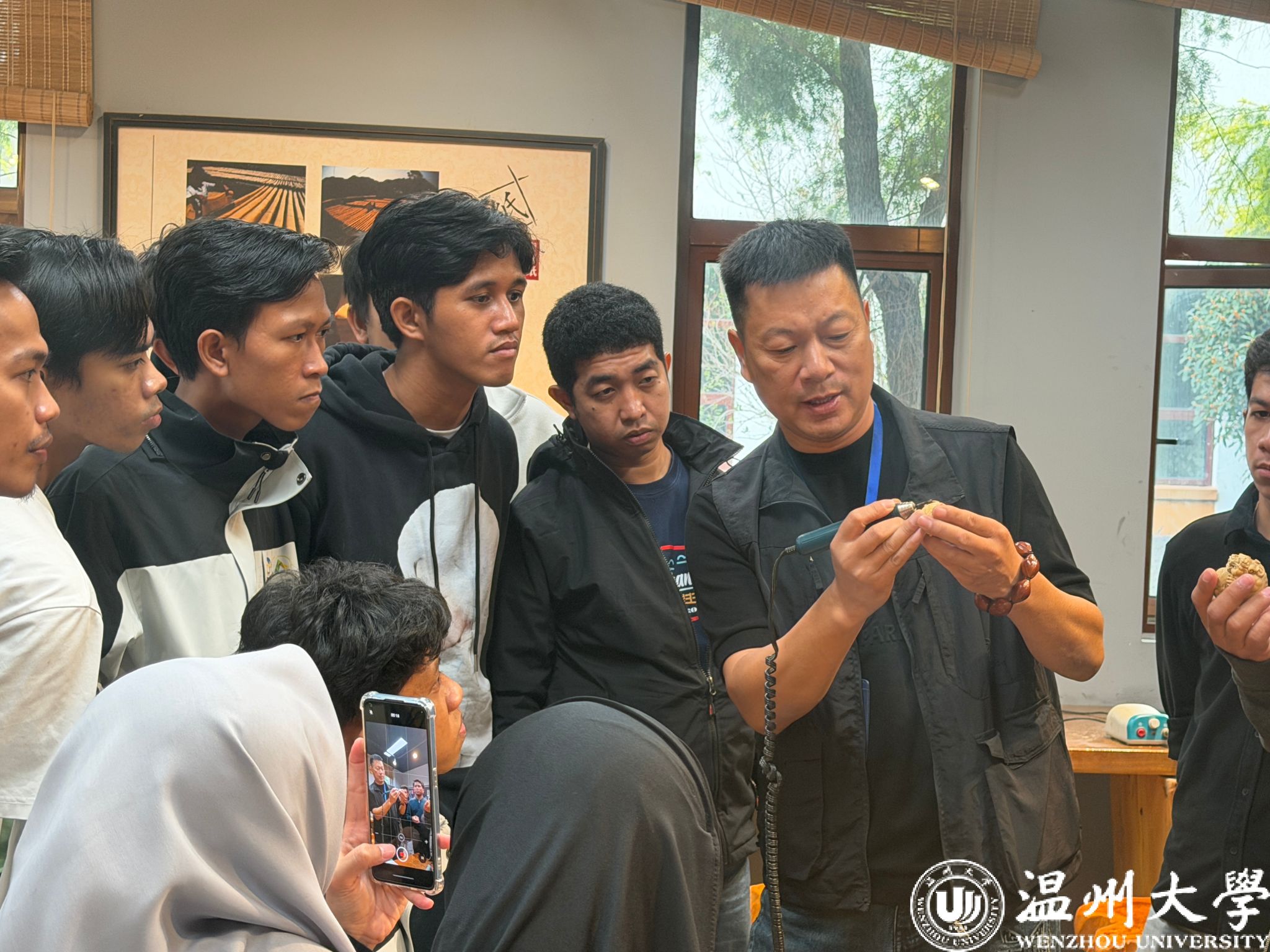 除了参观学习,学员们还亲手体验了黄杨木雕、瓯塑、掐丝珐琅等温州非遗技艺。在工艺师的指导下,他们用刻刀雕琢木纹,用彩泥堆塑画面,用金丝勾勒图案,在动手实践中感受传统工艺的精妙与匠心。“这是我第一次接触木雕,没想到普通的木头能变成如此精美的艺术品!”一位来自印度尼西亚的学员兴奋地表示,“这样的体验让我对温州文化有了更深的感情。”