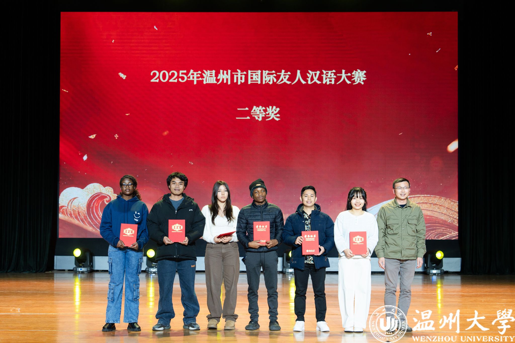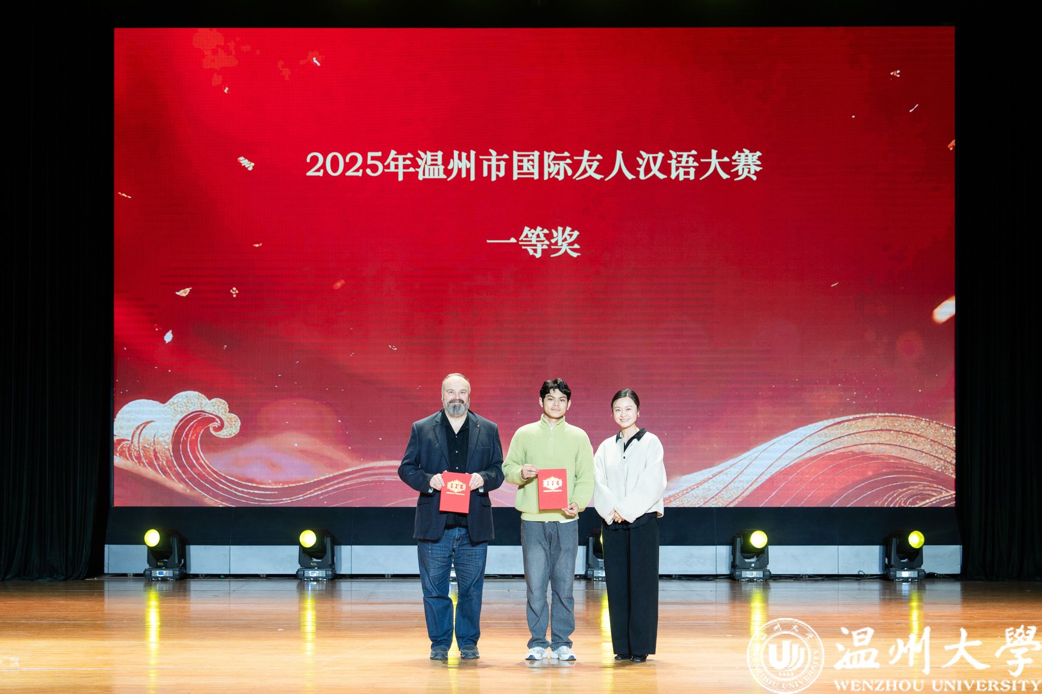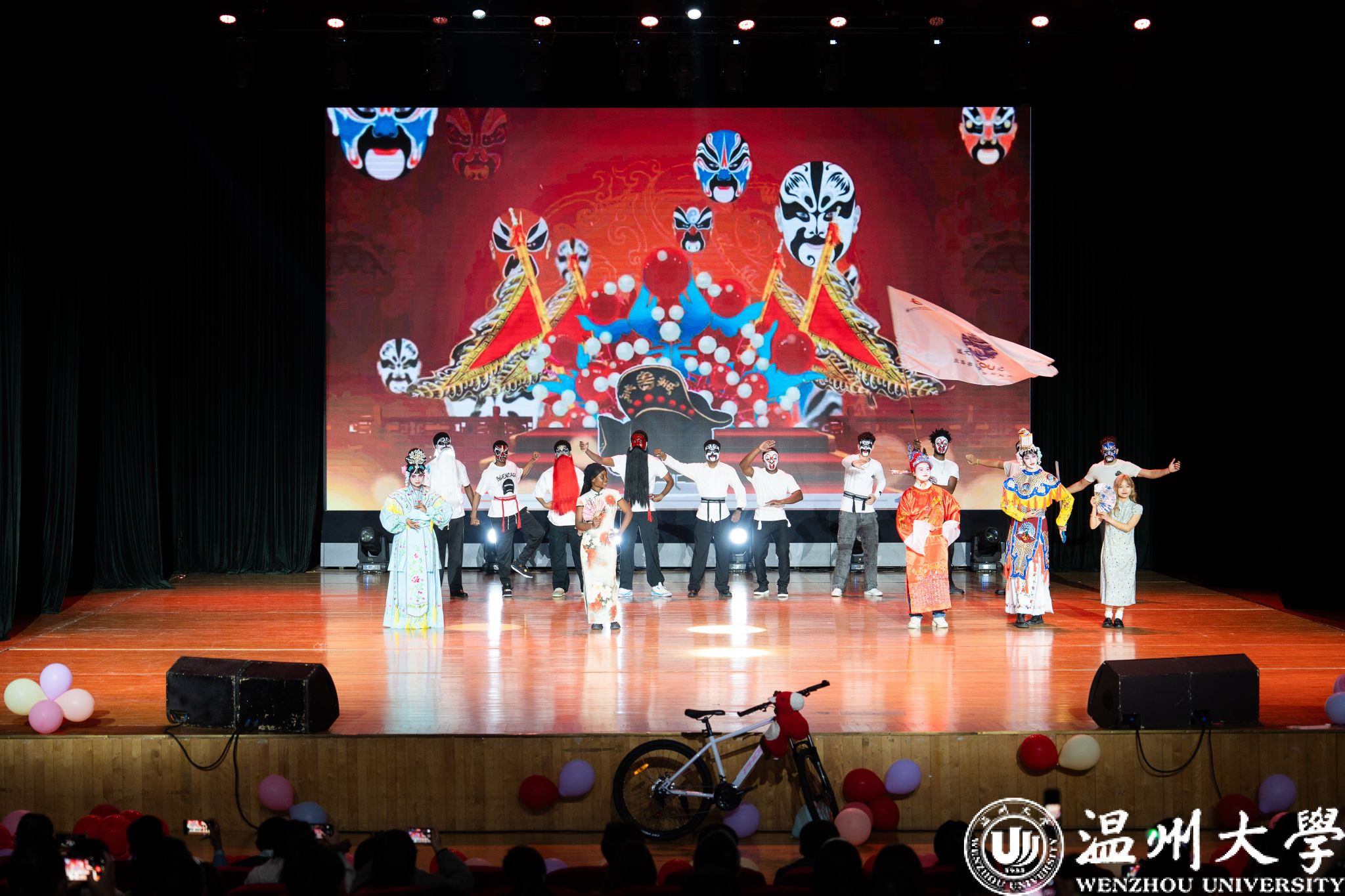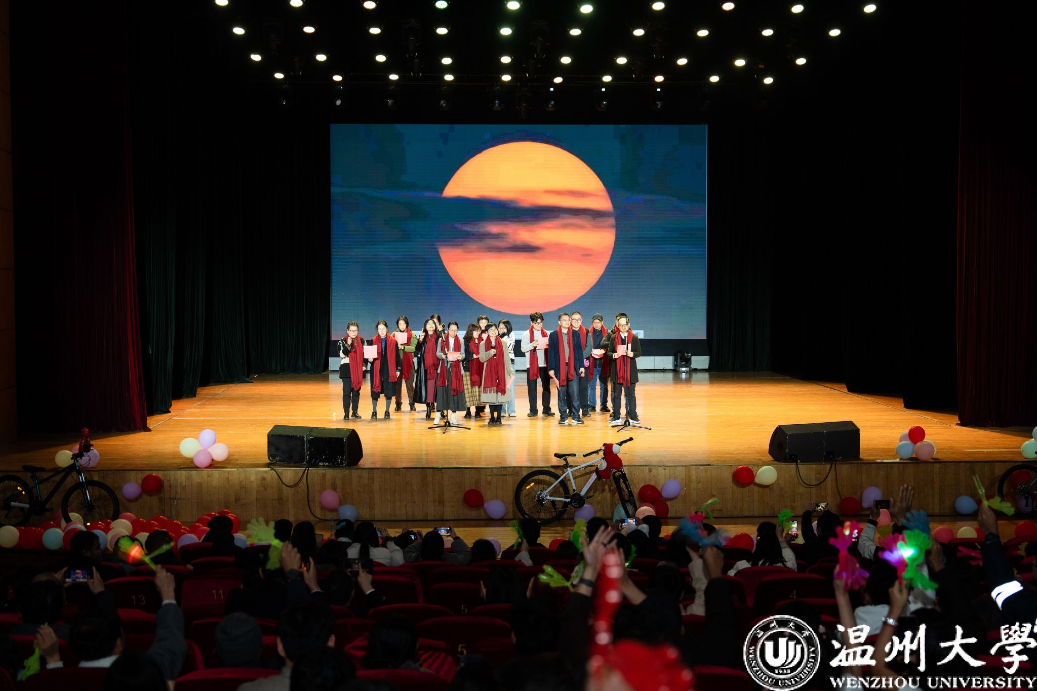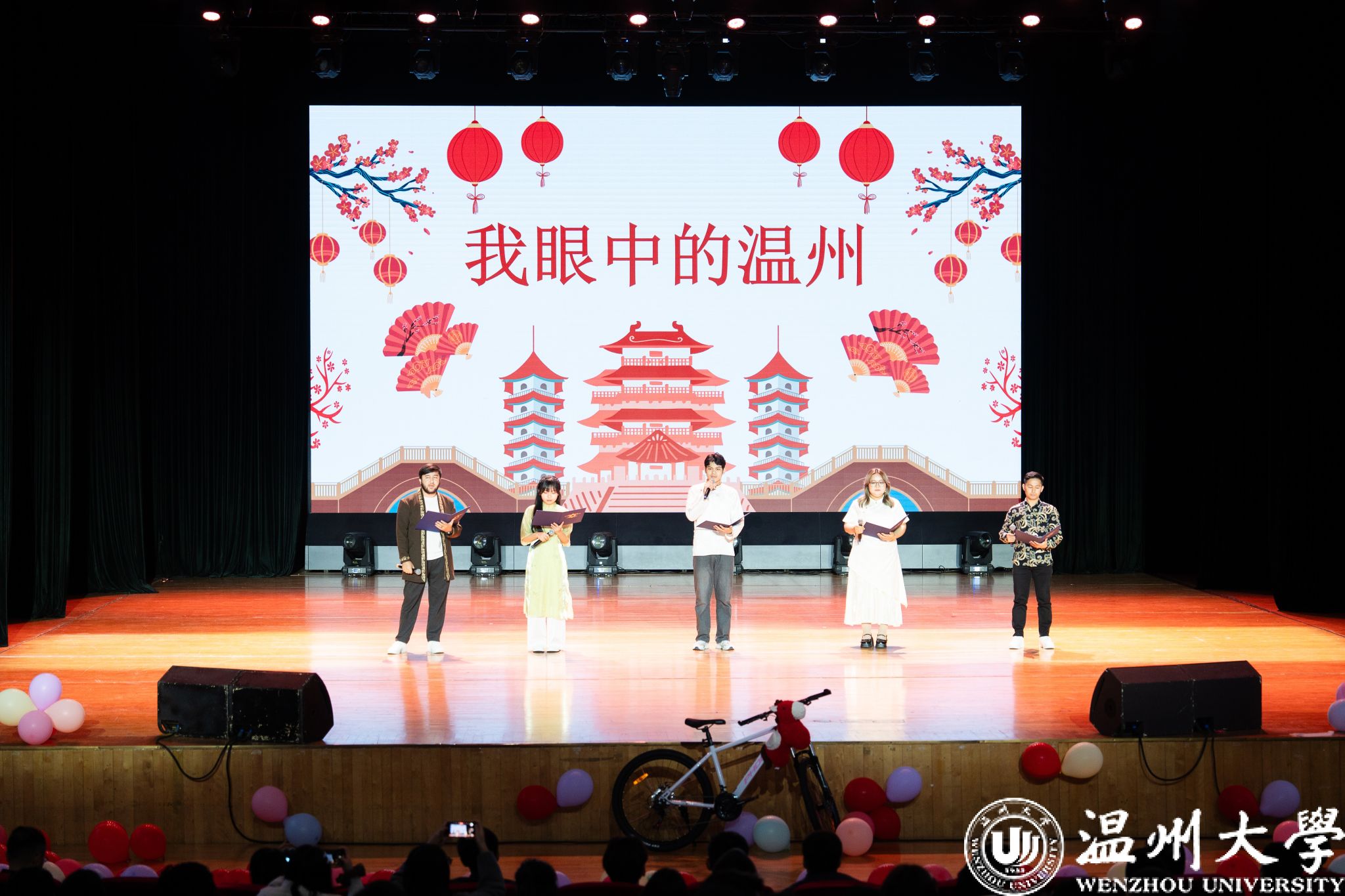 晚会特别设置了“留星闪耀——‘三全五育三服务’育人成果表彰盛典”环节。通过《华彩梨园》《温大国际龙舟队赛记》《太阳成集团tyc33455ccwww职工管理队伍CA风采展》等系列纪实视频,生动回顾了一年来国际员工在艺术、体育、社会工作、公益服务等领域的成长与贡献。现场依次表彰了“艺术之星”“体育之星”“公益之星”“见义勇为之星”等奖项,并为“2025年浙江省政府奖学金”及“2025温州市国际友人汉语大赛”获奖者颁奖。