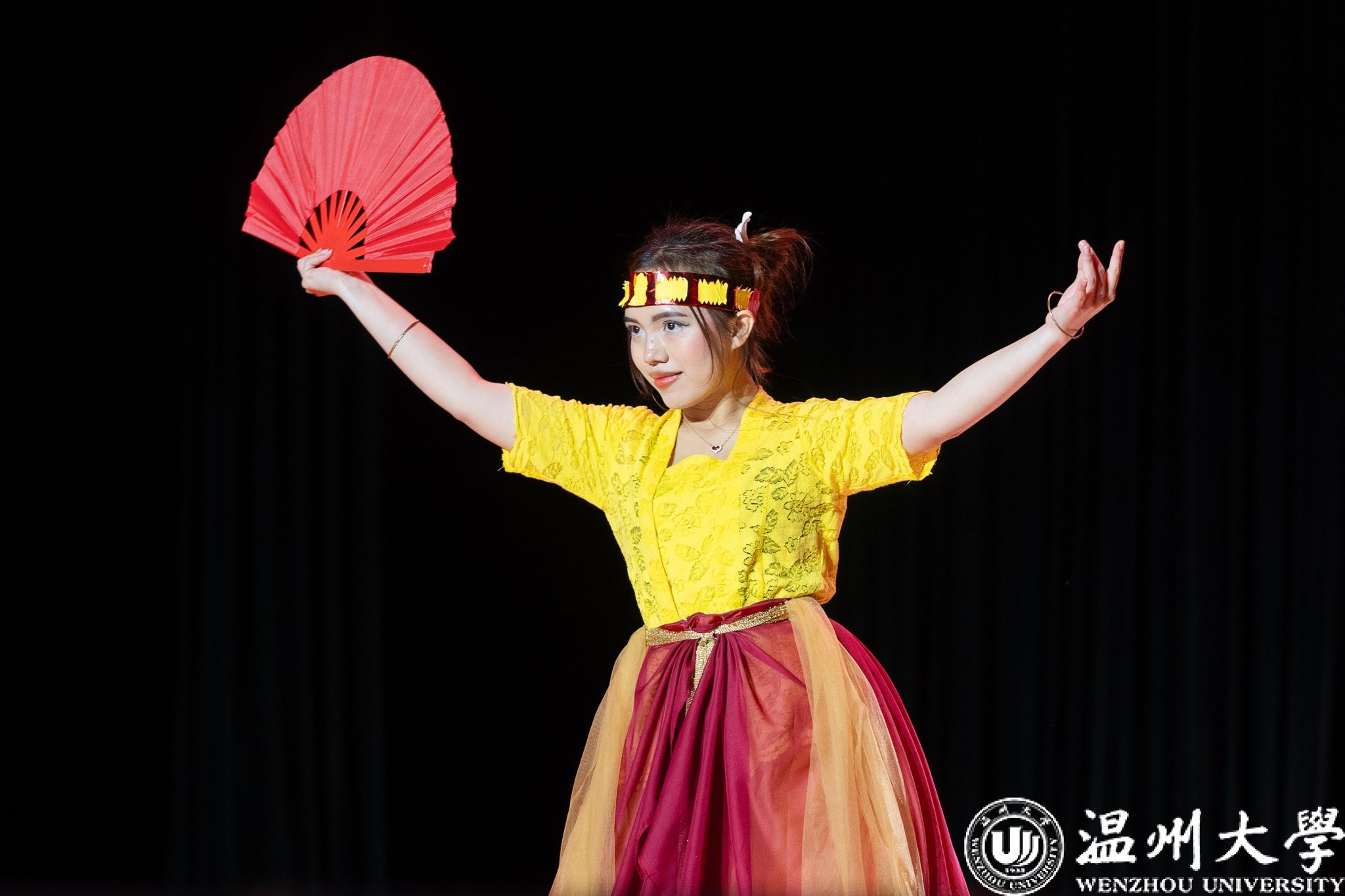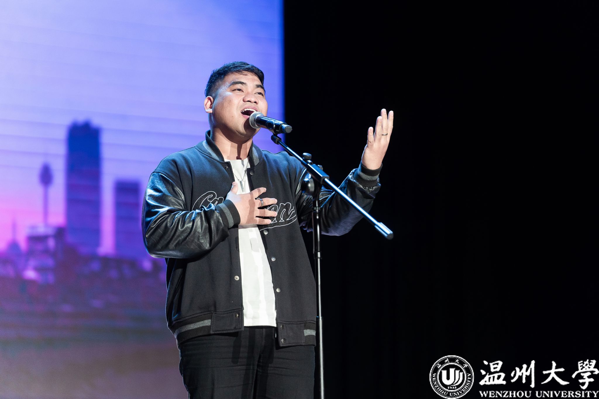 晚会在热情洋溢的新年祝福视频中拉开序幕。开场节目精彩纷呈,由印度尼西亚员工带来的舞蹈《Western-Indonesian mixed》,生动展现了东西方文化交融的独特魅力与蓬勃活力;朗诵《我眼中的温州》深情诉说国际学子对第二故乡温州的感知与热爱;青山班全体学子合唱的《隐形的翅膀》,歌声清澈而充满力量,唱出了青年学子追逐梦想的坚定与希望。