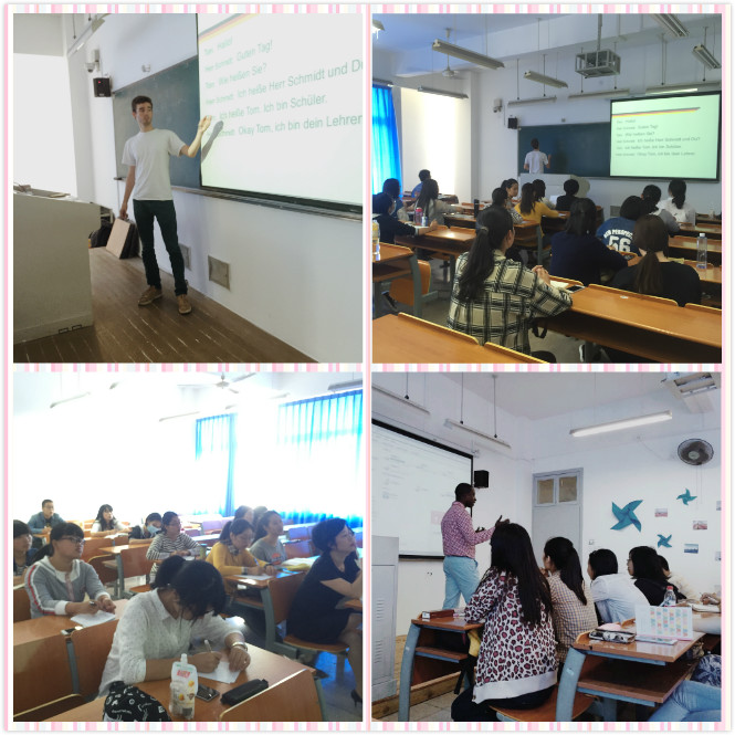 在第一堂课中,外教和职工老师们的幽默、友好给学员们留下了深刻的印象,学员们也积极参与课堂教学,回答老师们的各种问题。在各国文化的碰撞中,师生们热切交流,交换学习的心得,为第一堂课画上了圆满的句号。