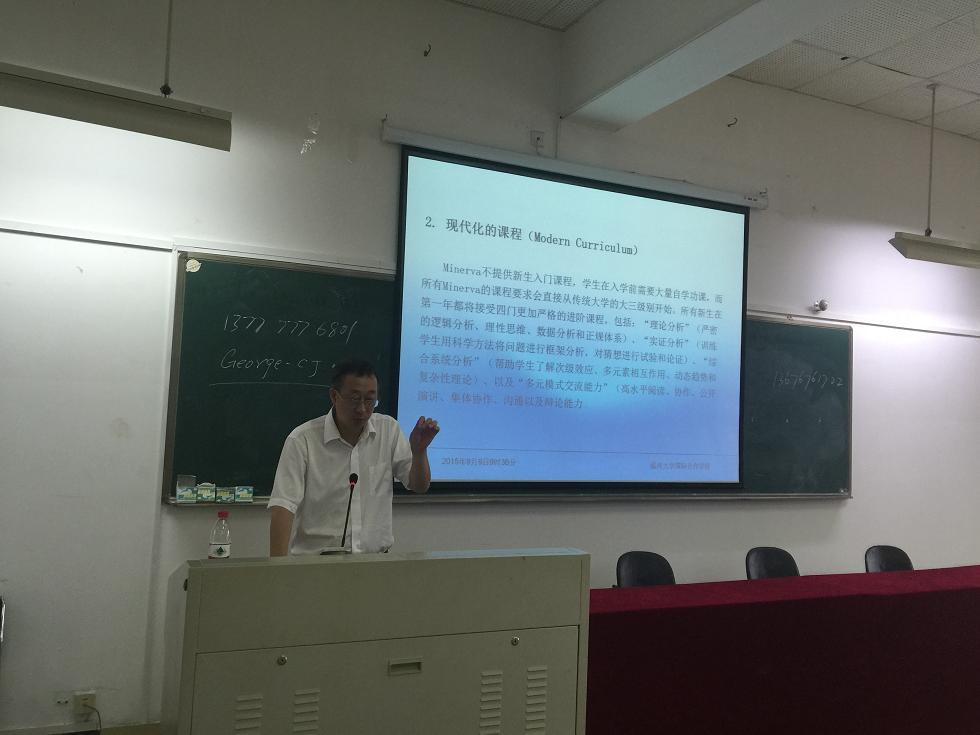 开学第一课,严晓鹏经理为全体新生作 “教育国际化与信息化”的专题讲座。他从沉浸式的全球化体验、现代化的课程、终身的成就支持和真正无地域限制、无歧视的招生这四大变革要素向新生阐述了“Minerva大学的理想”及其办学优势,立足教育国际化与信息化日益成为现今高等教育两大趋势的大背景,他还向新生详细介绍了MOOCs这一全新的国际化课程学习方式,指导新生在语言关、能力关、学业关和自我培训等四个方面合理规划四年的老员工活。最后,严经理展示了学院的发展历程和发展机遇,重点介绍了学院专业团队建设和项目合作情况,希望新生在学院多元国际化的特色氛围中,积极做一名能掌控自己时间的管理者,全面提升各方面的能力锻炼。