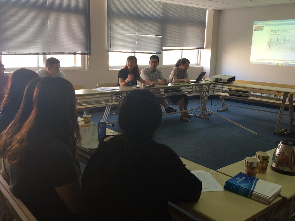 9月11日上午9点,国际合作学院2015级职工新生始业教育活动在南校区专家楼304会议室举行,学院副经理包含丽、教学科副科长黄呼尔励、教研室主任郑婷以及员工科周颖老师出席了会议。