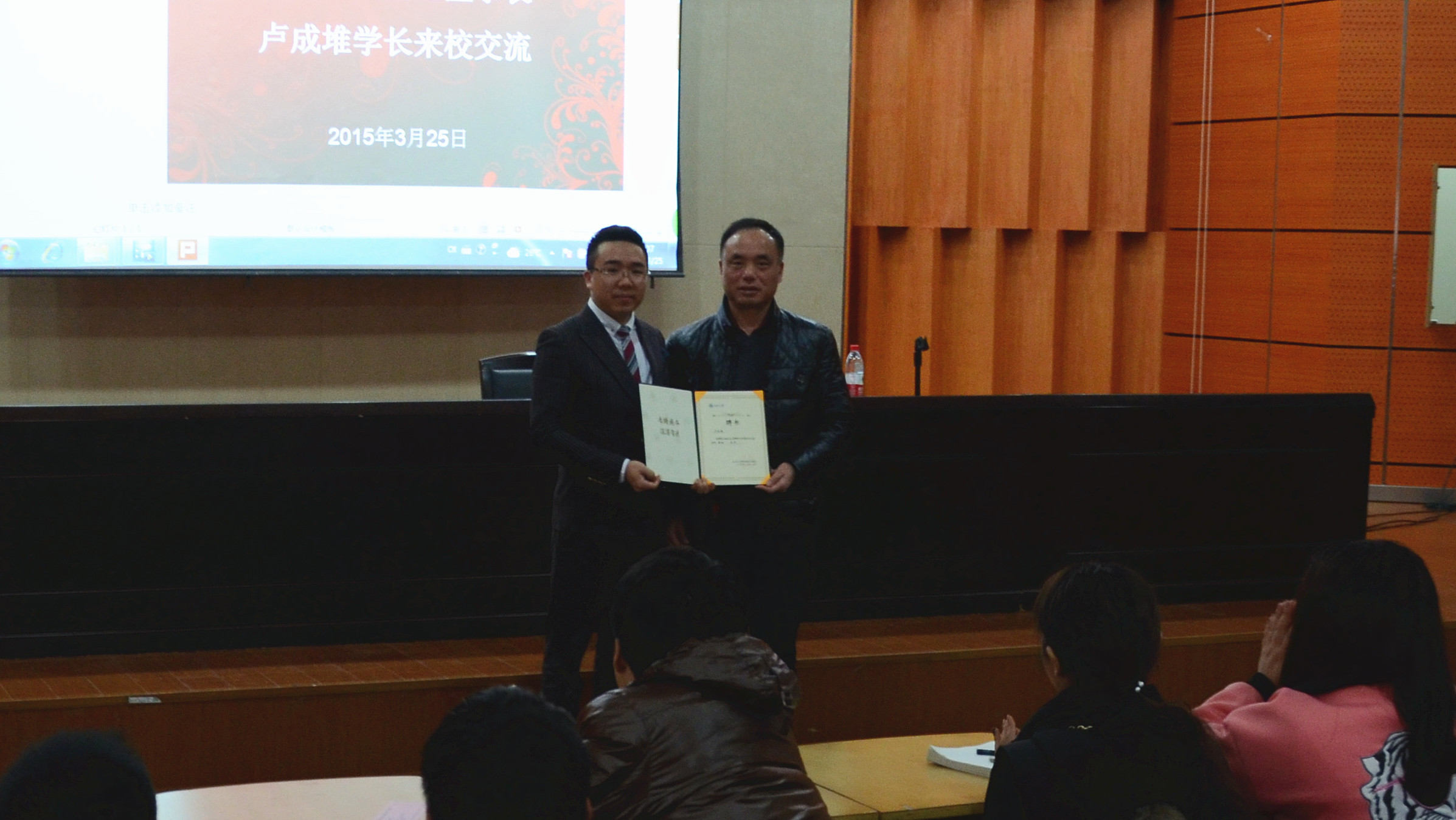 3月25日下午,应国际合作学院邀请,全国老员工创业模范、温州瓷爵士科技股份有限公司董事长卢成堆先生来到雁山厅,为公司学子带来一场主题为“励志改变人生,创业改变命运”的讲座。来自国际合作学院、美术学院、创业学院创业管理班等四百多名员工到场聆听,国际合作公司党总支书记朱建平出席此次活动,并向卢成堆先生颁发了院创业指导师证书。