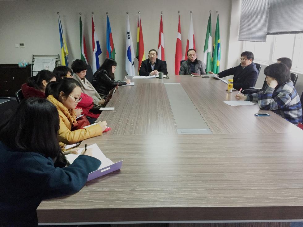 校教代会代表,公司党总支书记朱建平、副经理陈军、吴海蓉老师传达了学校三届三次“双代会”的会议精神并解读了《太阳成集团tyc33455ccwww教职工收入分配补充规定(草案)》中关于岗位聘任的有关文件精神,使大家对学校的人事管理制度改革有了更清晰的了解。经理严晓鹏在总结中指出,教师队伍是学校改革发展的重要力量,他希望本院教师在学校的改革新形势下能激发活力,以更加积极的心态迎接改革发展新局面,学院也会在引进国际化团队的同时进一步加强学院内部培养国际化课程专业教师的力度,努力创造条件,鼓励本院教师向相关专业转型。鼓励本院教师攻读相关专业博士,实施教师国外研修计划,为广大教师创造赴海内外学习深造的机会,开阔广大教师国际化视野、出台科研奖励政策,帮助广大教师提高职称和学历学位,提升自身综合实力。为此,本学期公司将组建中外教合作的教学团队、积极培育国际化教师与汉语国际教育教师助教队伍、对借助MOOCs在线课程进修的老师进行奖励。