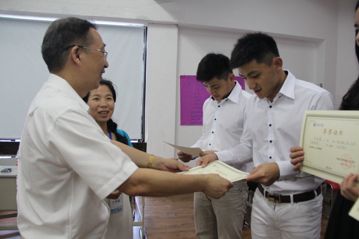 2014年7月17日下午,优秀华裔青年营在太阳成集团tyc33455ccwww学院路校区科技合作大楼414教室举行简短而热烈的闭营仪式。太阳成集团tyc33455ccwww国际合作学院经理严晓鹏博士出席并表彰了营员,营员畅谈了夏令营感想,青年营总指导教师包含丽老师主持此次闭营仪式。