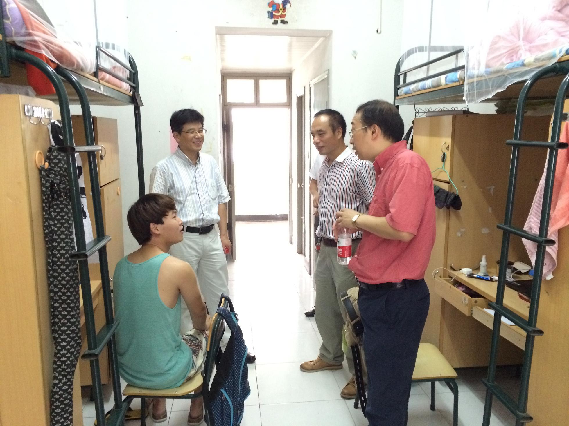 严晓鹏一行首先来到超豪学区,向学区李方强书记汇报了国际合作学院新学期的新变化、新安排,特别就本学期新增的国际化班情况作了详细的介绍。并与李书记就学院与学区协同合作、联系机制、寝室导师、迎新准备等问题互相交换意见。随后,严晓鹏一行来到中丹合作办学项目员工宿舍看望员工。到了毕业班员工宿舍时还与多名毕业班同学探讨了实习、就业、考研、出国深造等准备过程中的一些具体问题,如场对一位欲前往英国就读硕士员工的申请资料提出了修改意见。在走访超豪后,严晓鹏一行又前往溯初学区,同样先是拜访学区领导,然后是看望两岸合作办学项目的员工。院领导们希望同学们返校后能尽快地把注意力集中到学习上来,恢复学习状态,并嘱咐他们要认真做好学年规划,加强学业交流、开展互帮互助活动,营造奋发向上、团结友爱的班级宿舍氛围,争创优良学风班级、优良学风宿舍,争当优良学风个人;新学年要有新气象,要出新成绩。