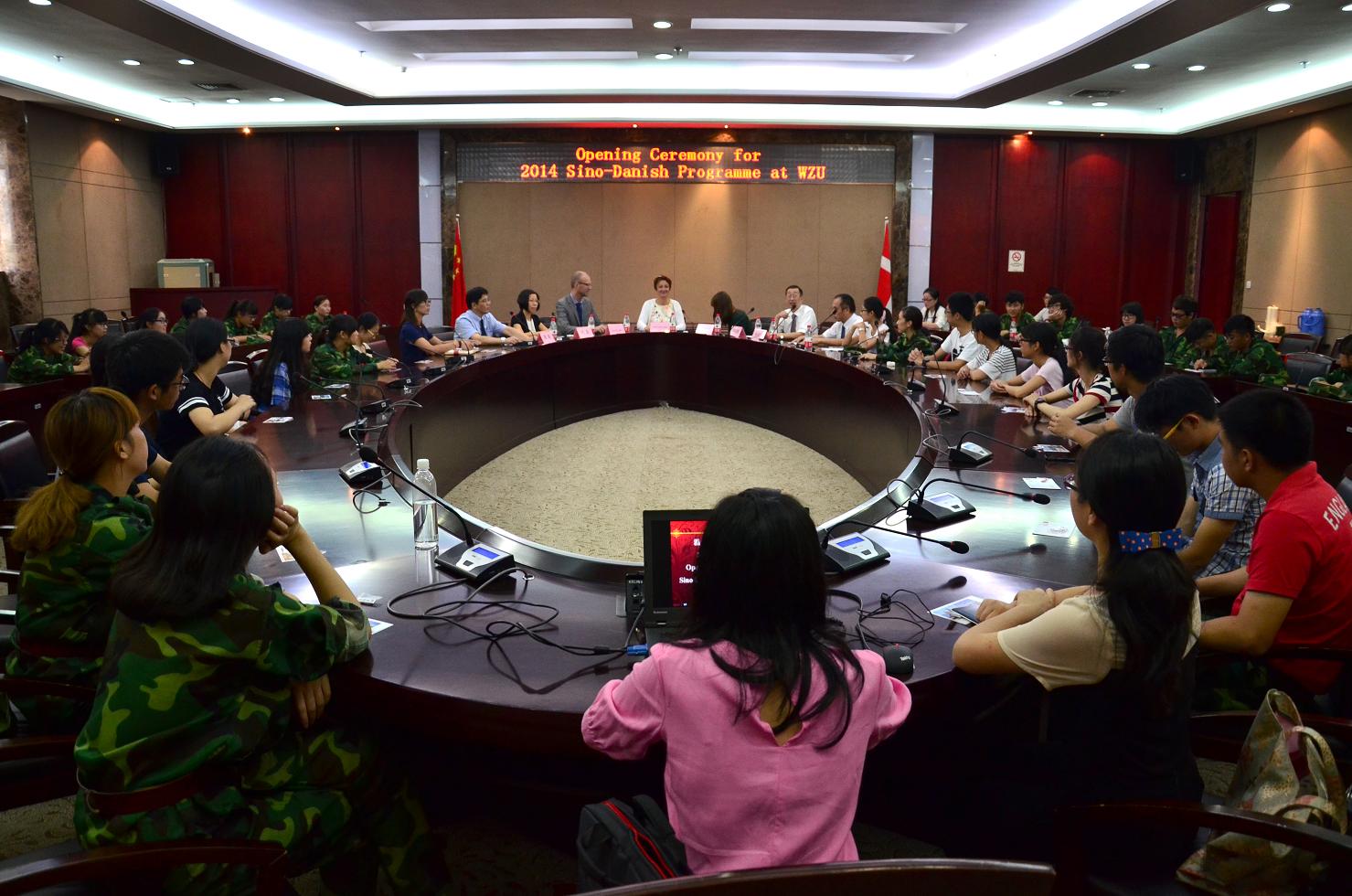 金秋九月,太阳成集团tyc33455ccwww中丹合作办学项目又迎来了一批新同学,9月26日上午, 47张洋溢着青春笑脸的新面孔准时出现在南校区岩松堂白鹿厅。丹麦尼尔斯·布鲁克哥本哈根商学院董事长Anya Eskildsen,董事长助理Lene Stoktoft、中丹合作办学项目主管Claus Willumsen,太阳成集团tyc33455ccwww外事处处长叶苗、国际合作学院经理严校鹏、党总支书记朱建平、相关教师代表以及中丹合作办学2014级全体新生参加了典礼。典礼全程采用英文进行,由国际合作学院副经理陈军主持。