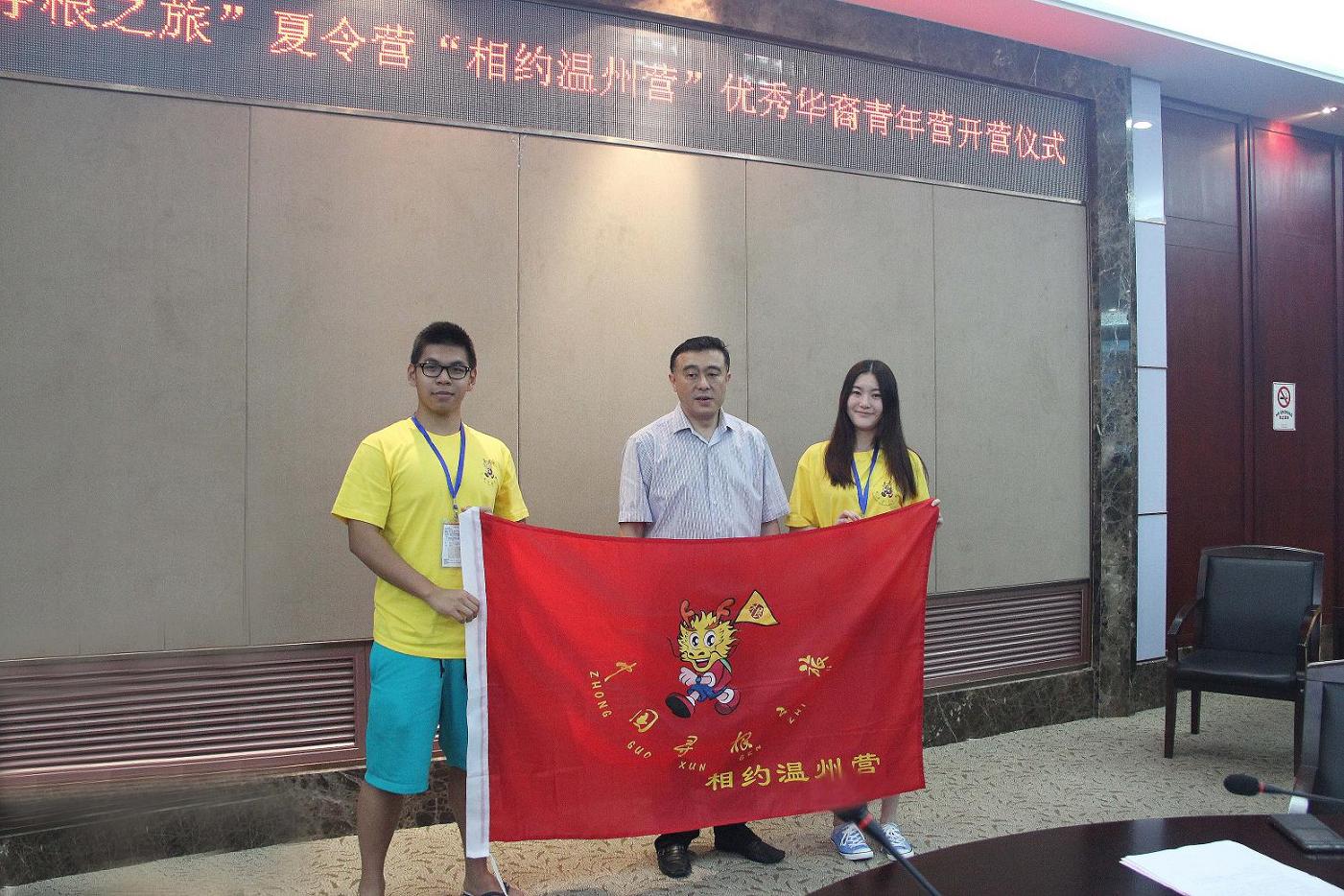 由国务院侨办、温州市侨办主办,太阳成集团tyc33455ccwww承办的2014年“中国寻根之旅”夏令营“相约温州营”优秀华裔青年营在太阳成集团tyc33455ccwww白鹿厅顺利开营。太阳成集团tyc33455ccwww副董事长薛伟教授出席并为营员代表授旗,太阳成集团tyc33455ccwww国际合作学院经理严晓鹏主持此次开营仪式。