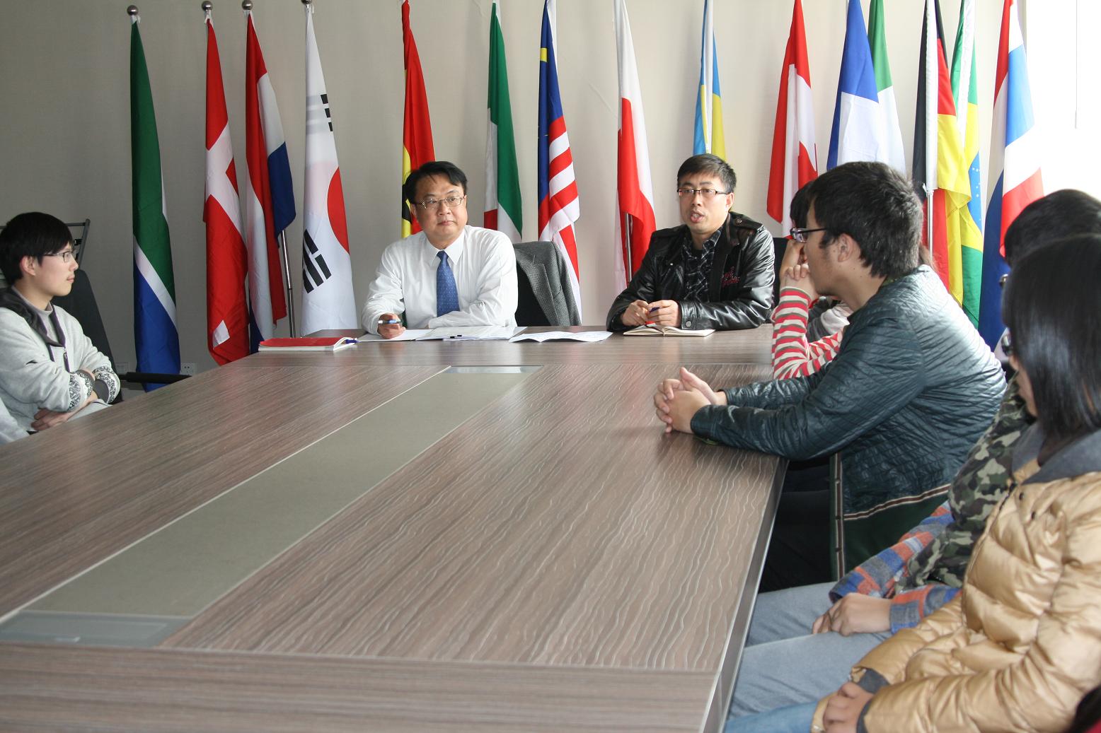 游坤明博士一行还与两岸合作项目员工召开了座谈会,会上,同学们积极提问,互动热烈,气氛活跃。游坤明就更好地学习专业课程、专业英语等作了分享,就同学们所关心的问题,如课程安排、赴台学习、Oracle SQL证照考试等事宜安排作了说明。最后,他还就同学们感兴趣的ACM程序设计大赛等作了简单介绍,同时表示中华大学作为ACM亚洲区程序设计大赛的曾经举办单位,会为有兴趣参赛的同学提供最大的支持。