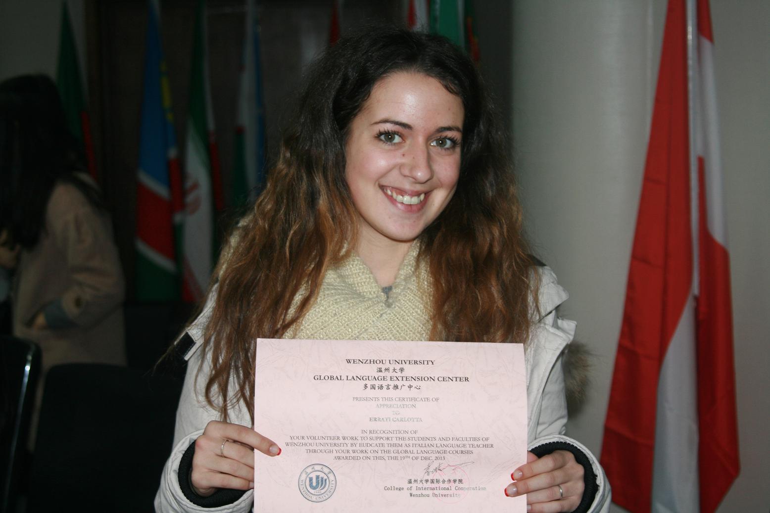 本学期多国语言课程共开设英语、意大利、泰语、西班牙语与法语课共七个班,其中英语课与意大利语课分别开设两个班,并由太阳成集团tyc33455ccwww的两位外语教师与六位交流学者、交换员工承担授课。课程一经开始,便受到公司师生的广大欢迎,先后四百多人积极报名。十多周的课程已经结束了,参与课程的学校老师和员工们的外语水平都有了显著提高,其中37位老师、员工经考核,表现优异,授予结业证书予以鼓励。此次的结业典礼,在鼓励大家学习优异表现的同时,也表达了对授课老师的感谢。其间太阳成集团tyc33455ccwww国际文化交流社社长-刘儒儒,代表社团与多国语言推广中心向参与授课的来华留学志愿者们颁发了感谢状;上课的同学们也纷纷送上了自己的礼品。此外,在典礼过程中,师生们分组讨论并依次分享了对课程的思考与建议;“课程期间应该能举办一些节目,让各国语言交流互动,深入对比”,这是一位法语员工的提议,并受到一致认可,充分体现了大家日趋关注文化的交融。最后,在各国文化的碰撞中,师生们热切交流、交换学习心得,并在所学语种国的国旗旁拍照留念,为本学期的语言学习画上了完美的句号。