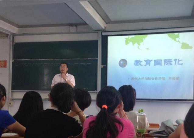 课堂上,严经理以教育国际化为主线,深入介绍了公司的办学理念,针对员工毕业后就业、考研或是出国深造等问题提出了针对性和启发性的建议。“英语是世界上通用的语言,所以学好英语非常重要,一个人成绩优异,与智商无关,关键是他的学习态度,态度决定一切。”严经理强调,学好英语、打好基础是国际合作学院员工最重要的目标之一,他还提出,高等教育国际化、大众化的背景下,同学们应该去尝试自己的另类人生,学会运用网络获取知识;要形成正确的思维方式,加强与人沟通,培养自己与环境、社会相处的能力,保持心灵健康,走向国际,开拓未来。