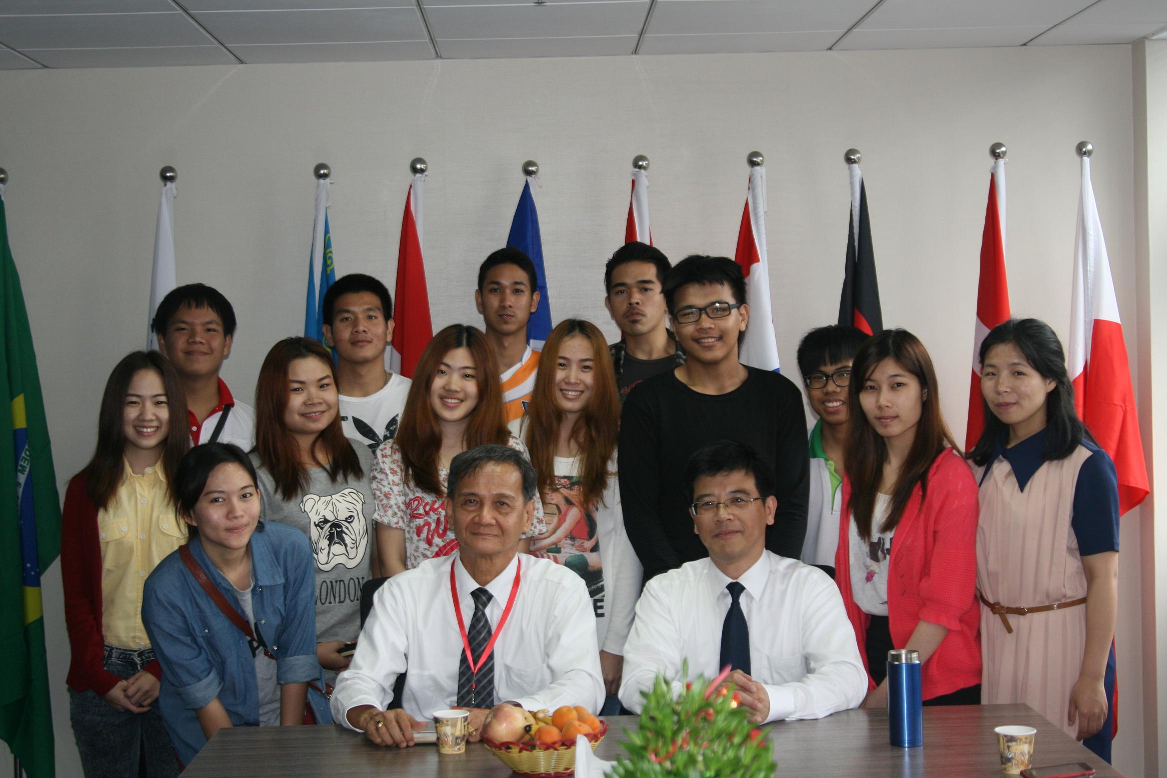 近日,泰国东方大学主管国际事务的副董事长Dr. Pichan Sawangwong来访公司,并在国际合作学院副经理陈军的陪同下看望了在公司就读汉语言文学本科3+1项目的34名泰国职工。